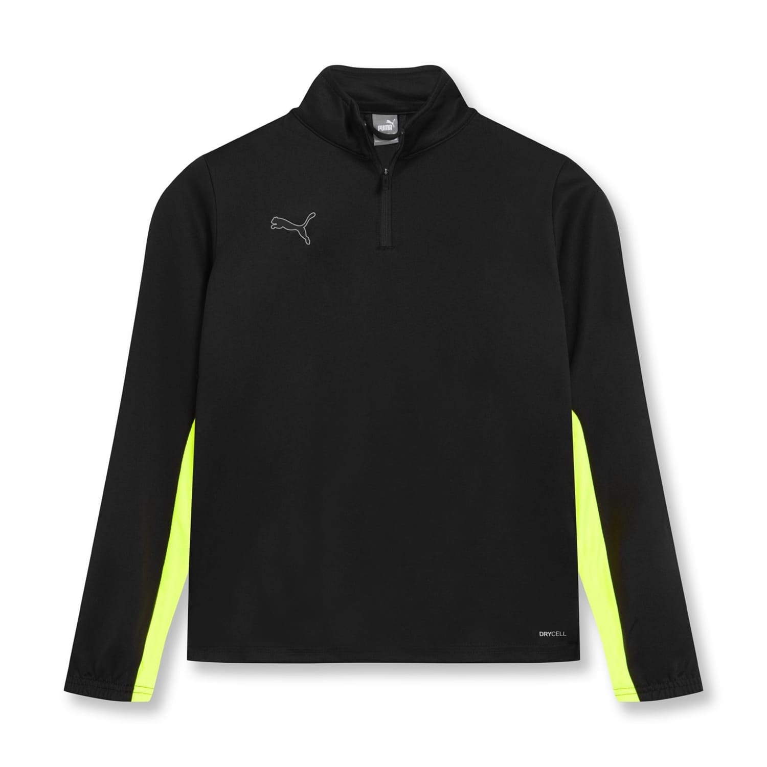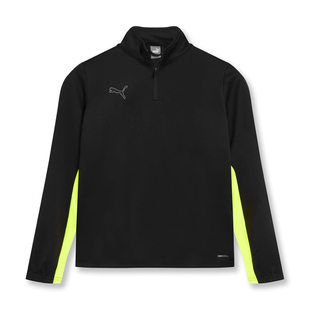 - One of the standout features of this drill top is Puma's signature dryCELL technology. It utilises bio-based moisture-wicking properties to keep them dry, even during intense training sessions. The innovative Quarter Zip design not only adds style but frames the funnel neckline, ensuring a snug fit that enhances their performance. Allowing your little athlete to step onto the field or training session with confidence, simply zip down the quarter-zip for further unrestricted movement.