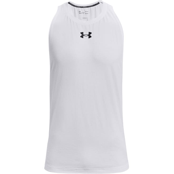 This Under Armour Baseline Tank Top will boost your performance on the court. Crafted in a super-soft cotton blend that dries fast, the vest features a crew neck, dropped armholes for extra mobility, a shaped hem for enhanced coverage and a 4-way stretch material to provide ultimate mobility. -
