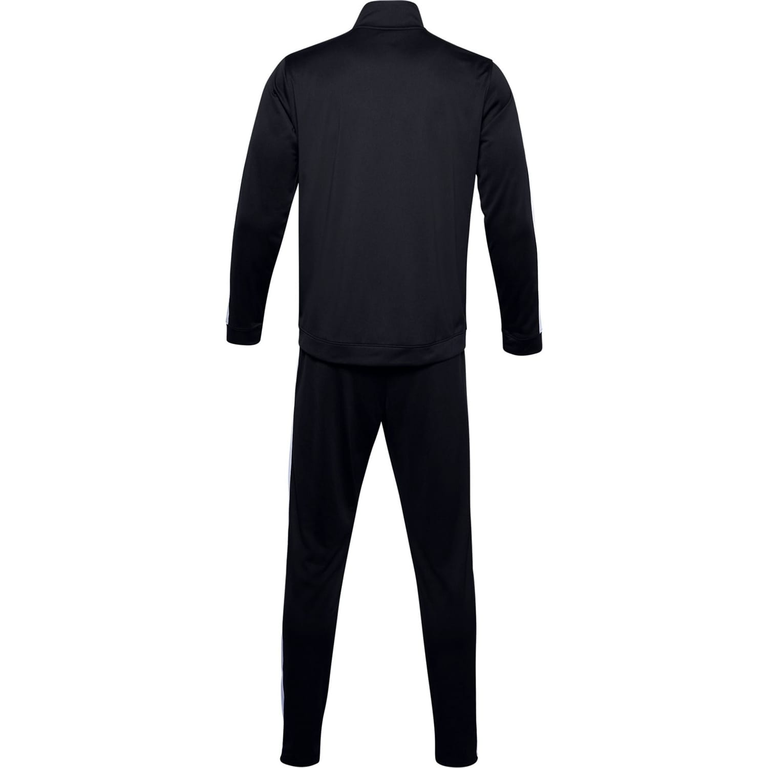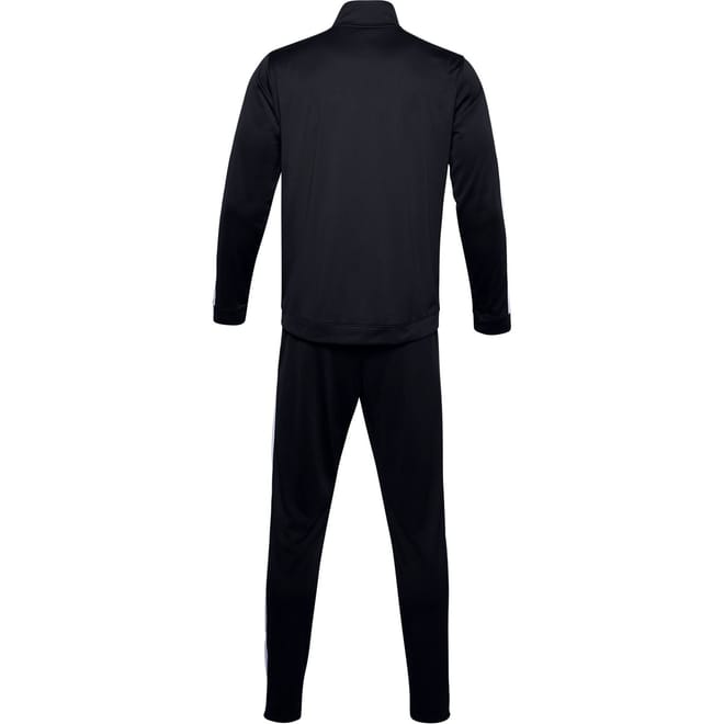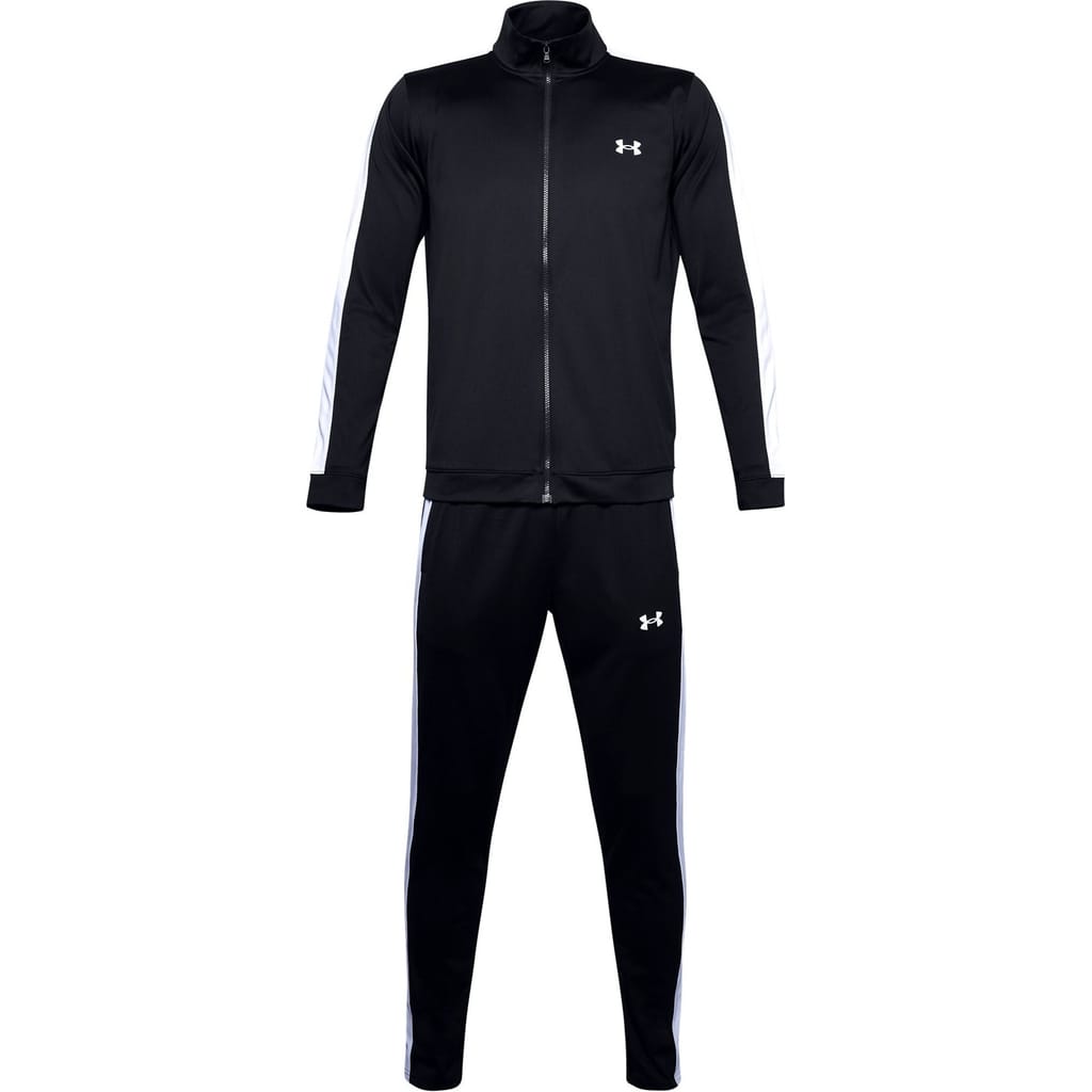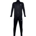 This Under Armour top-pant set from the activewear collection features a knit and woven design. The long sleeve sweatshirt with a mock neck and plain sleeves is complemented by track-style casual trousers. The set is embellished with the Under Armour logo, ensuring both style and brand recognition. -