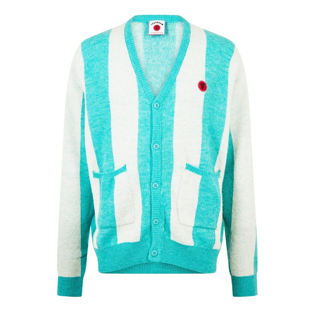 - Adorned in a captivating teal hue with an all-over striped pattern, this knitted cardigan makes a statement. From casual gatherings to upscale events, the ICECREAM Striped Cardigan is the perfect layering piece.