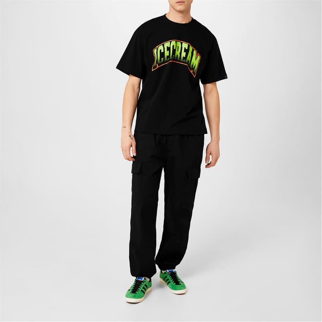 This Icecream top features a regular fit with short sleeves and a crew neck. The design showcases a graphic print with lettering, complemented by a logo embellishment for a distinctive touch. -