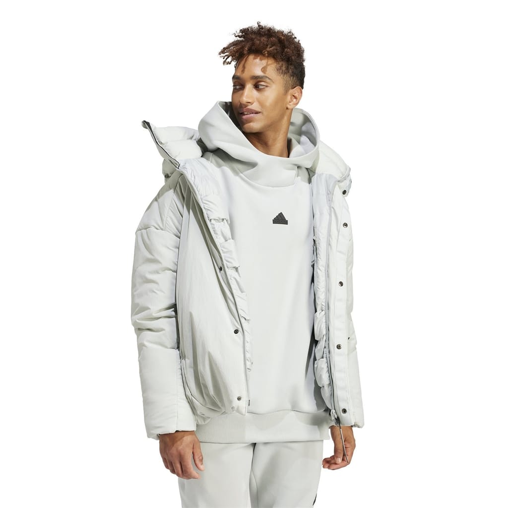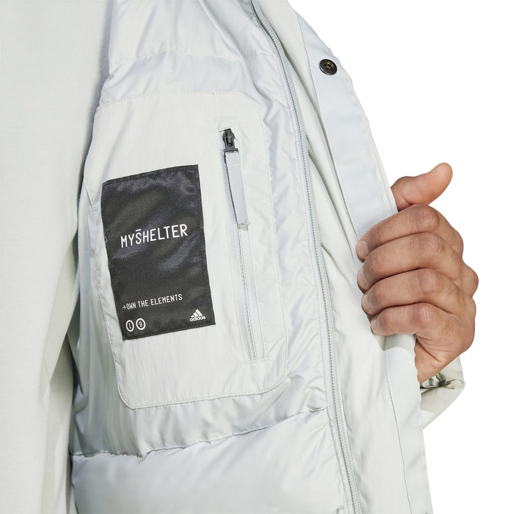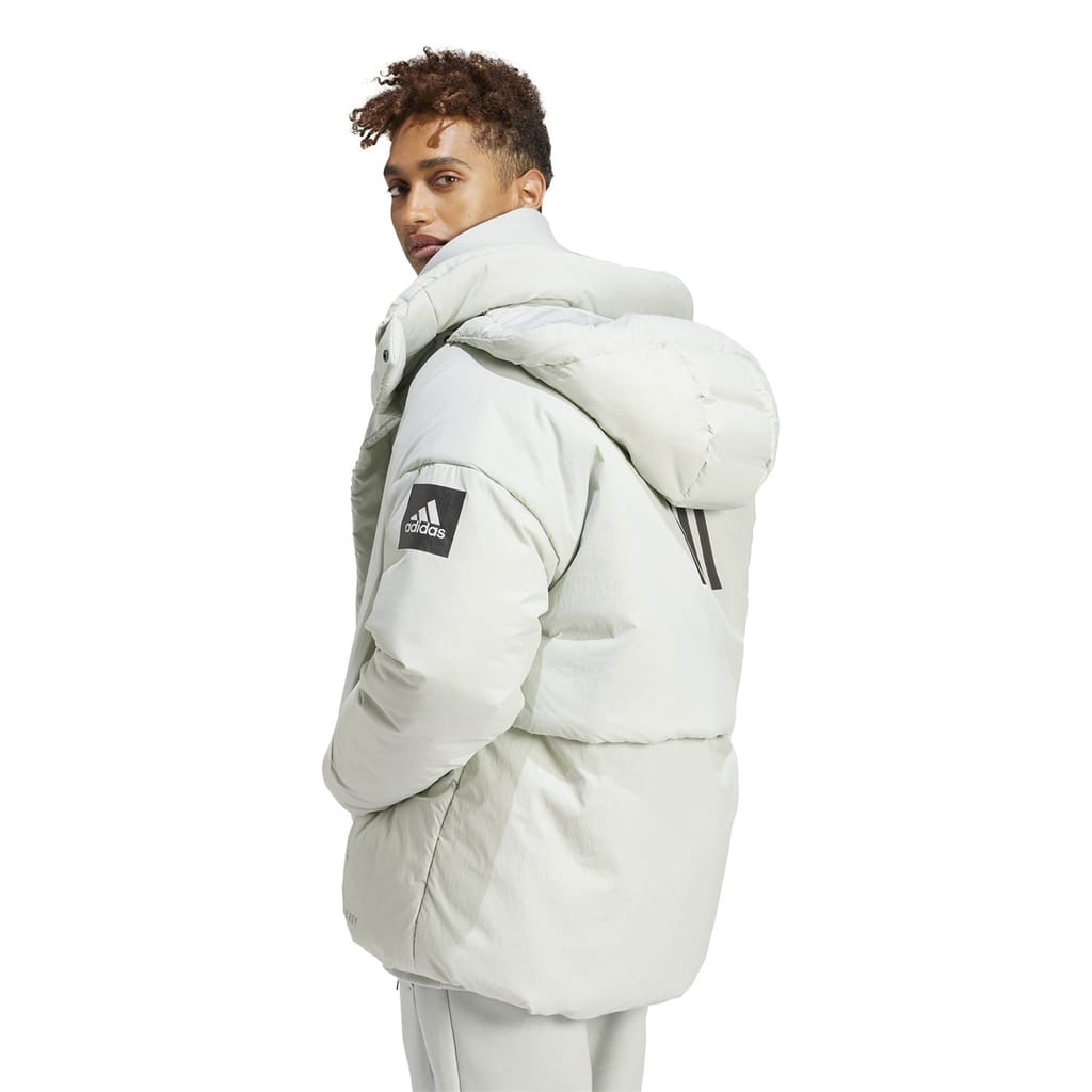 The adidas down jacket is a stylish and functional choice for chilly days. With a puffer design, this jacket features a zipper closure for easy wear. It offers a relaxed fit, ensuring comfort, and includes practical elements like a logo and zipped pockets. The solid pattern adds a timeless appeal, making it a versatile addition to any wardrobe. -