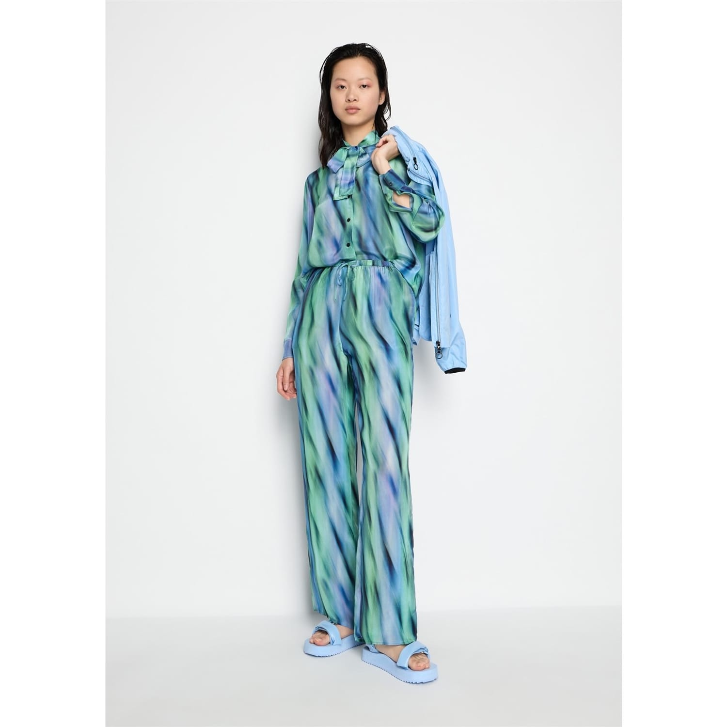 Elevate your wardrobe with armani exchange trousers. These abstract pattern pants feature a convenient drawstring closure and practical pockets, combining style and functionality effortlessly. -