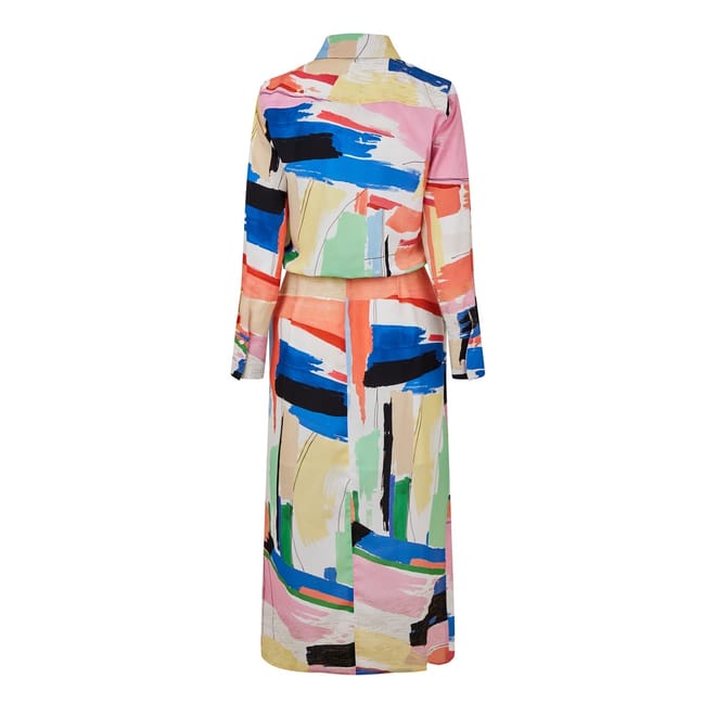 This Marella shirtdress is a perfect blend of style and comfort. The midi length and regular fit create a flattering silhouette, while the shirt collar and collared neck add a touch of sophistication. Featuring an abstract pattern and a straight hem, this dress with long sleeves and button closure is a versatile addition to any wardrobe. -
