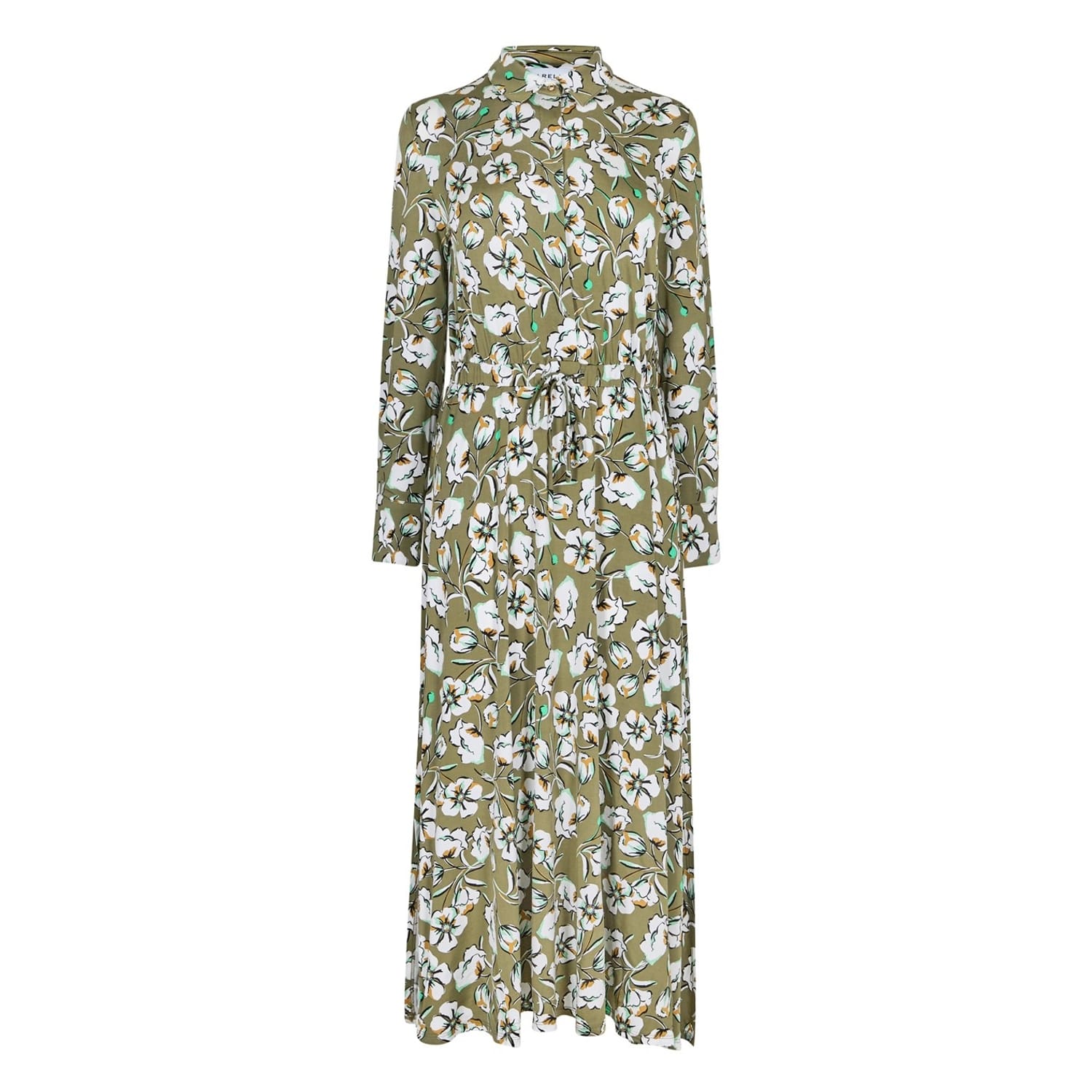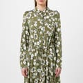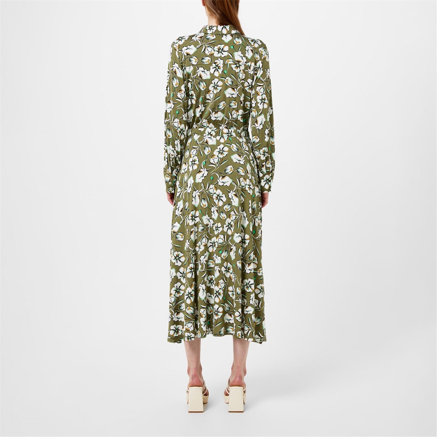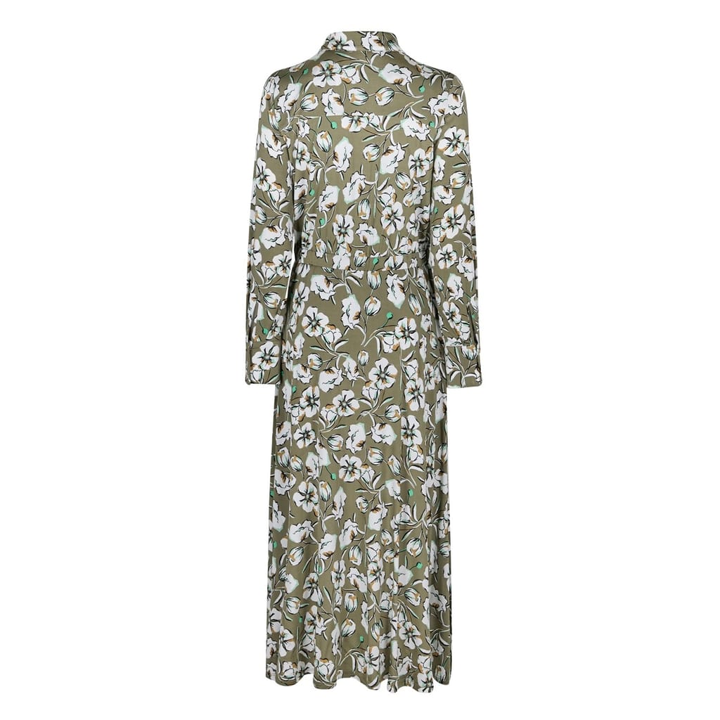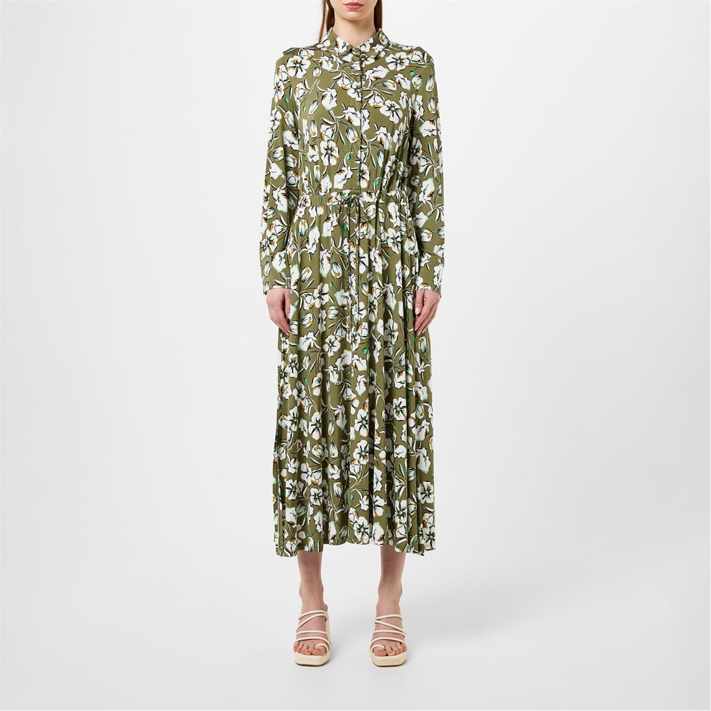 Embrace elegance with the Marella jersey dress, featuring a floral pattern. This midi dress boasts a shirt collar and collared neck, offering a sophisticated touch. The long sleeves with cuff accents add a refined detail, while the straight hem ensures a clean finish. The button closure and regular fit provide both comfort and style, making it a versatile addition to your wardrobe. -