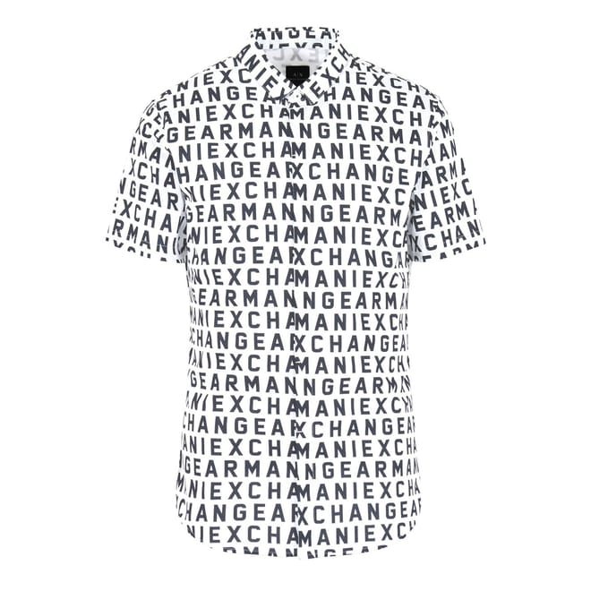 Elevate your style with a touch of fashionable sophistication with the All Over Logo Short Sleeve Shirt from Armani Exchange. Meticulously crafted from a comforting blend of cotton and elastane. Showcasing a classic collar which exudes sophistication, while the short sleeves and button fastenings offer breathability and comfort. The look is finished in a solid white and black coloured logo print throughout offering a sophisticated and alluring look.