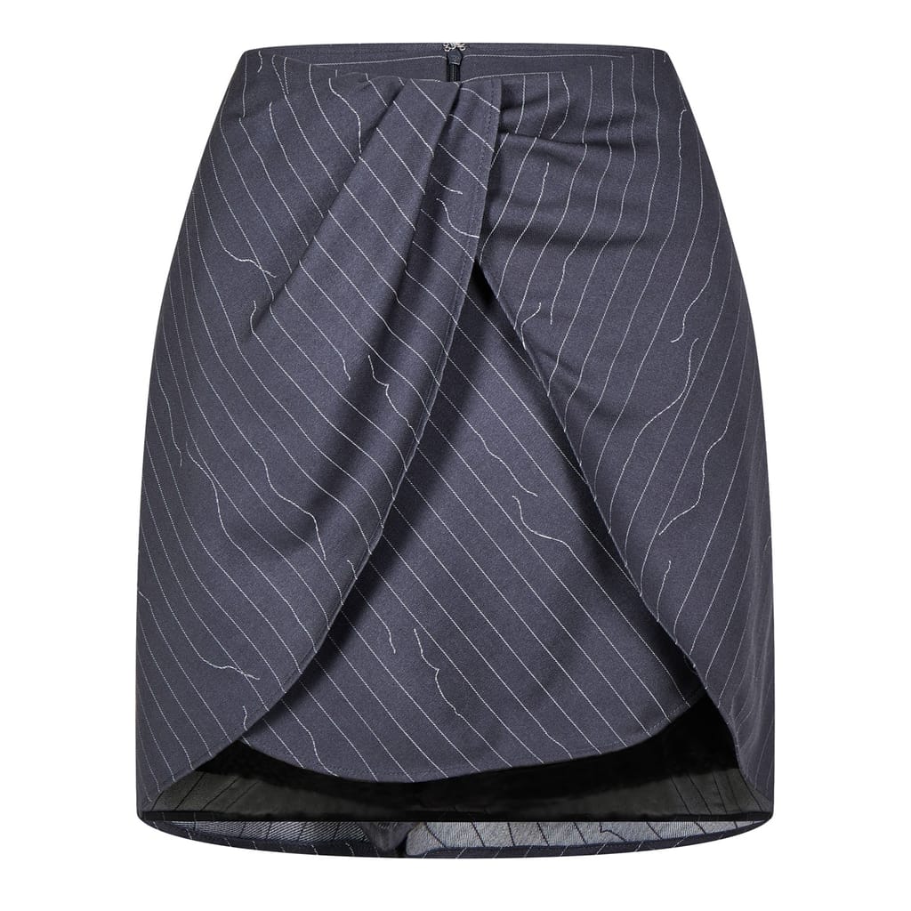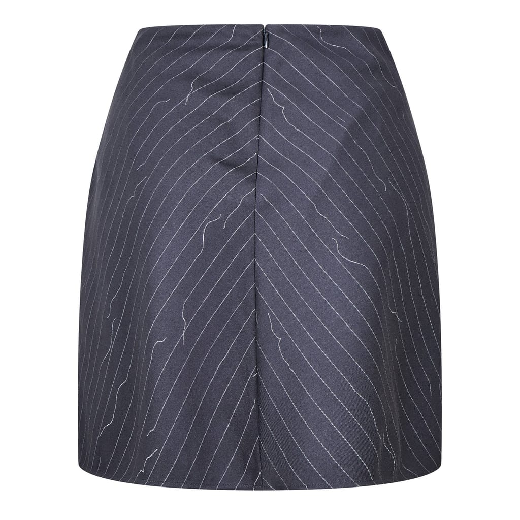 This Off-White mini skirt features a striking stripe pattern, perfect for casual collections. Designed with a slim fit, it includes a convenient zipper closure. The skirt is embellished with a logo, adding a distinctive touch to its modern aesthetic. -