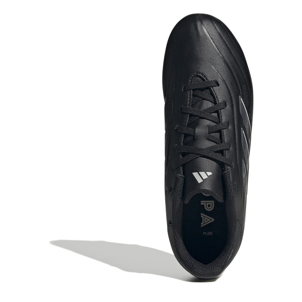 The adidas Copa Pure II.3 Firm Ground Boots are the ultimate choice for young players ready to make their mark on the pitch. Crafted with a synthetic leather upper, they provide durability and flexibility, allowing young players to move with agility and control. These boots offer a regular fit and feature a lace closure for a secure and adjustable fit. The specialist outsole is designed for firm ground surfaces, making it suitable for dry or natural grass. Inspired by Copa's rich heritage, the contrast heel blinker complemented by an array of subtle details. The synthetic leather upper and the specialist outsole work together to deliver silky-smooth touches and unrivalled ball control, empowering your little superstar to showcase their skills and dominate the game. To complete the design, the iconic adidas 3 stripes feature on the side of the bots for an authentic touch and brand appeal. -