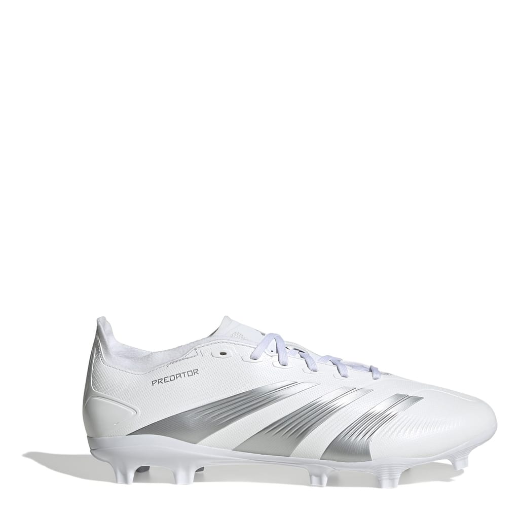 Get ready to take your football skills to the next level with the adidas Predator League Firm Ground Football Boots. These lightweight football boots are designed to elevate your performance on the field and help you score those game-changing goals. Made for the goal-scoring champions, the Predator is packed with the latest technology to enhance your swerve, power, and control. With better grip and tactile function, thanks to strategically placed Strikefins on the medial side, you'll have the advantage you need to dominate the pitch. The laced low cut collar and Controlplate provide a secure and supportive fit, while the floating tongue and comfortable one-piece tongue construction with extra soft lining adapt to your foot for a customized feel. The Firm Ground outsole ensures optimal traction and stability on various playing surfaces. Plus, the bold lateral branding and iconic 3-stripes give these boots a stylish and confident look. Composition: Synthetic. Lining: Textile. Sole: Synth -