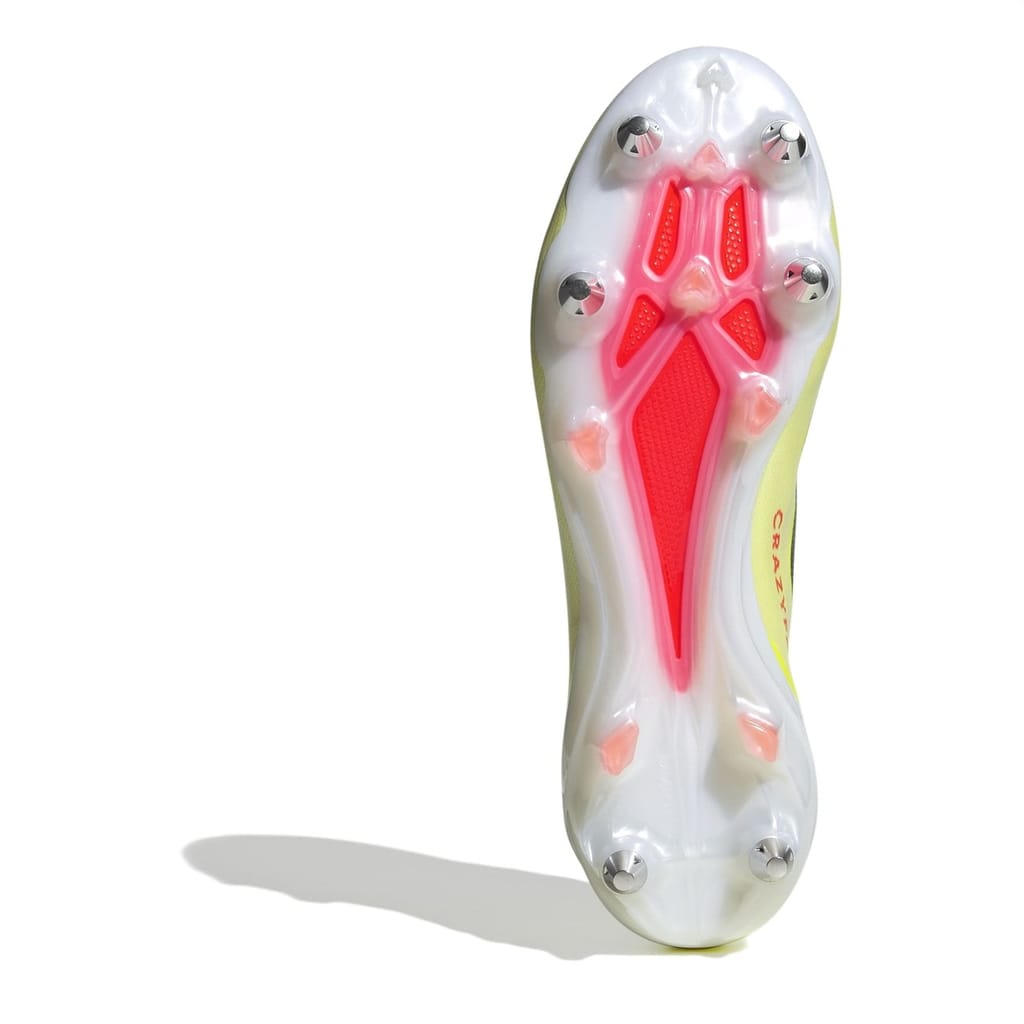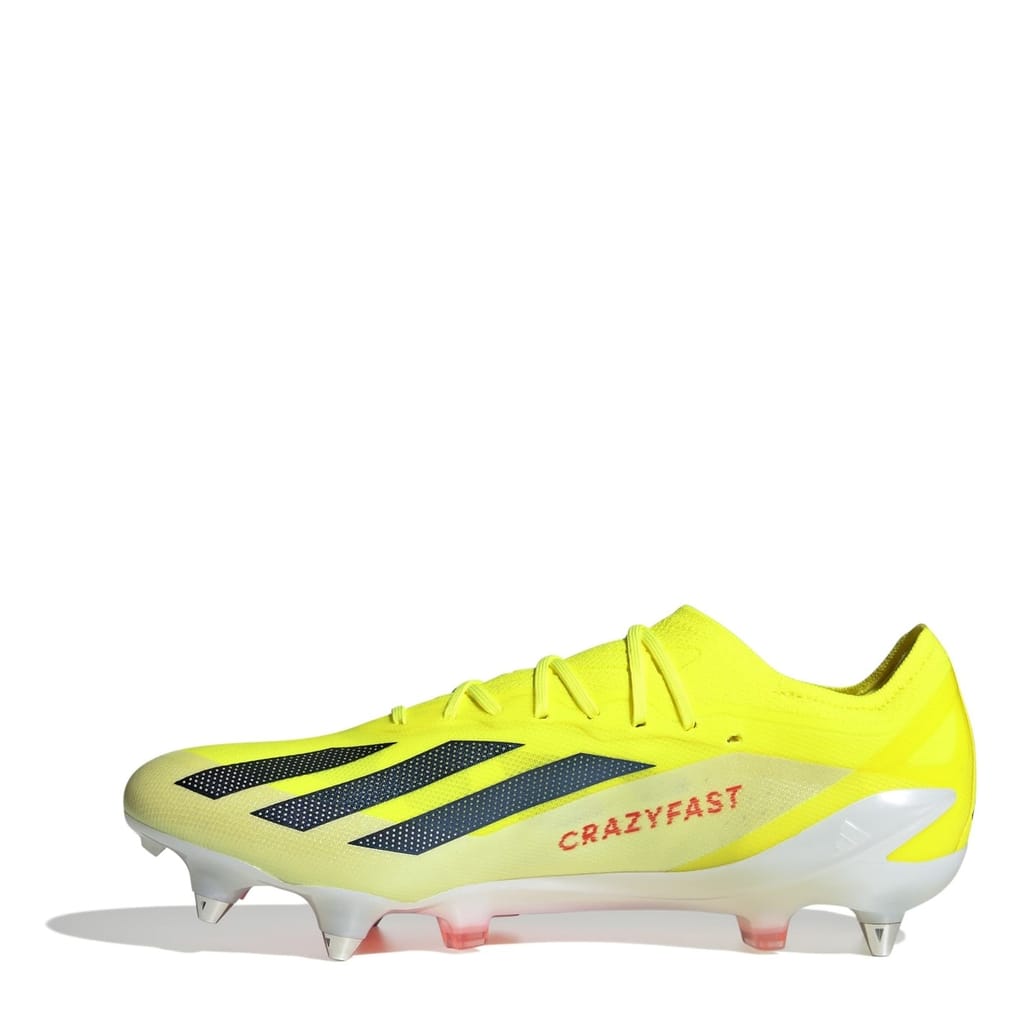 Get ready to unleash your full potential with the adidas X Crazyfast Elite Soft Ground Football Boots. Featuring a semi-translucent Aeropacity Speedskin upper, these boots not only provide a unique, eye-catching look but also offer enhanced breathability and flexibility, keeping your feet cool and comfortable during intense matches. The PRIMEKNIT collar straps you in, providing a secure fit that supports your ankles and enhances your agility. With a lace closure, it ensures a customisable and supportive fit on the pitch. The midfoot support cage adds extra stability, minimizing any unwanted movements, while the anti-slip silicone heel print allows you to maintain balance during high-speed sprints and quick turns. The Speedframe soft ground outsole with extra forefoot studs delivers optimal traction and stability, allowing you to make quick movements with confidence. To complete the design, the iconic 3 stripes and Crazyfast logo feature on the boots for brand recognition. Composition: -