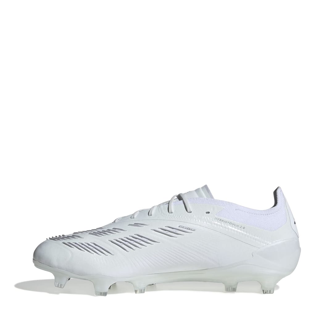Get ready to unleash your inner predator and dominate the pitch with the adidas Predator 24 Elite Low Firm Ground Football Boots. These grippy boots are designed for one thing - finding the back of the net with pinpoint accuracy. It's all about goals, and these boots are crafted to give you the edge every single time. The HybridTouch 2.0 upper provides unparalleled flexibility, allowing you to make those lightning-fast cuts and agile movements. With strategically placed rubber Strikeskin fins, you'll enjoy an unmatched grip for precision shooting. The adidas PRIMEKNIT collar and full-length Controlframe 2.0 outsole ensure a comfortable lockdown, giving you complete control on firm ground. These boots are optimized for use on firm ground, with an outsole and stud configuration that provides the perfect balance of traction and manoeuvrability. The comfortable one-piece tongue construction with an extra soft lining ensures a customized fit that adapts to your foot shape. And of course, the bold lateral branding and iconic 3-stripes give these boots that unmistakable adidas style. Composition: Upper: Synthetic. Lining: Synthetic. Inner sole: Textile. -