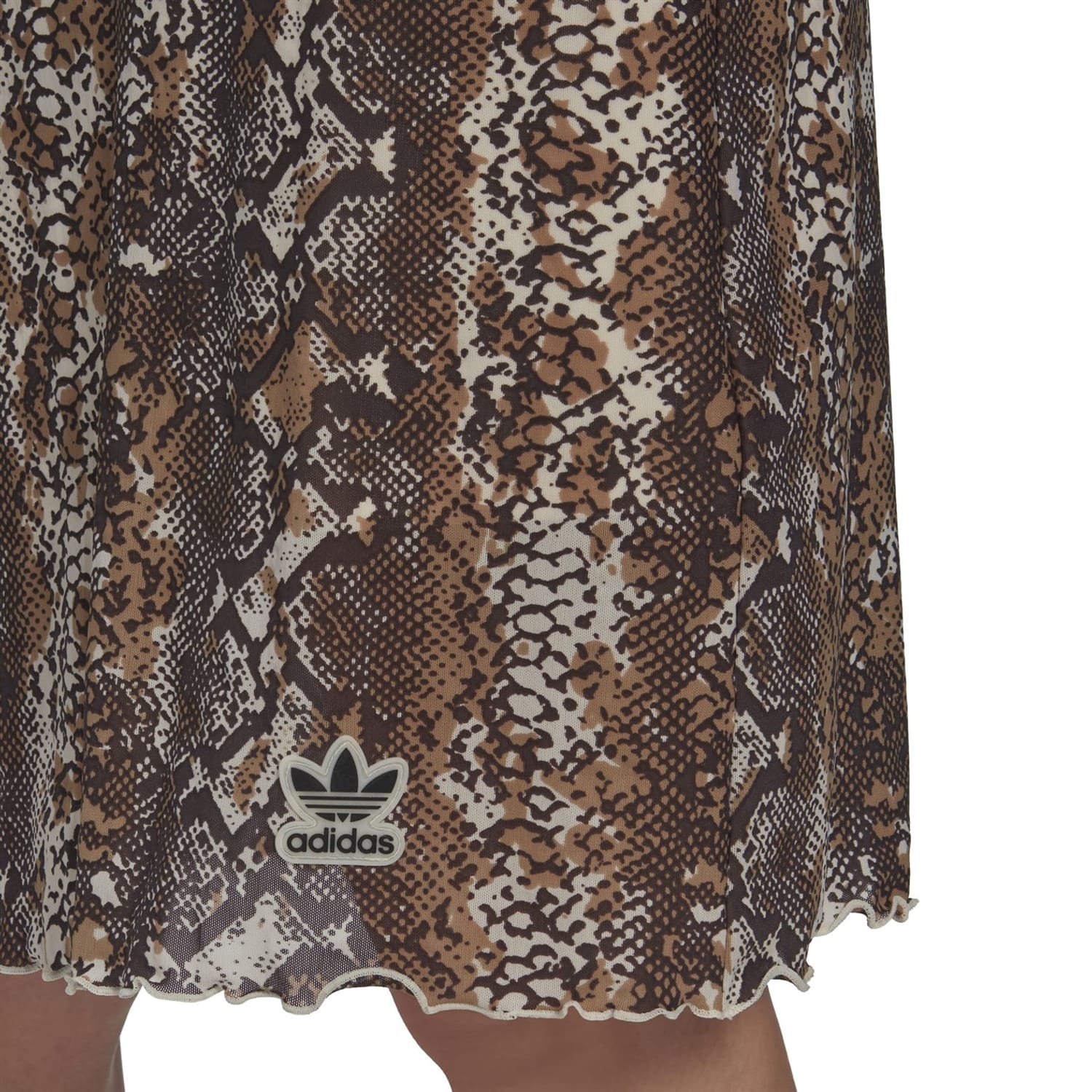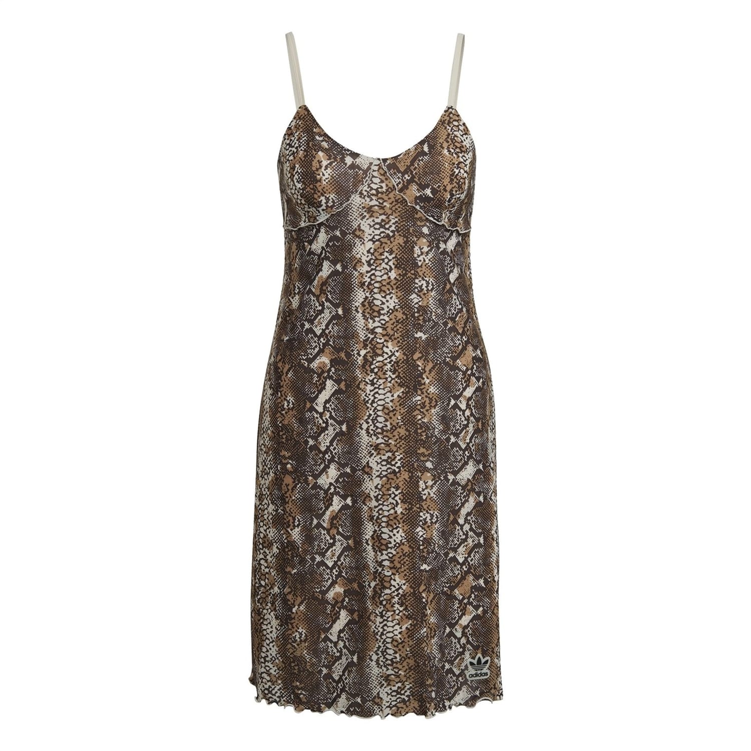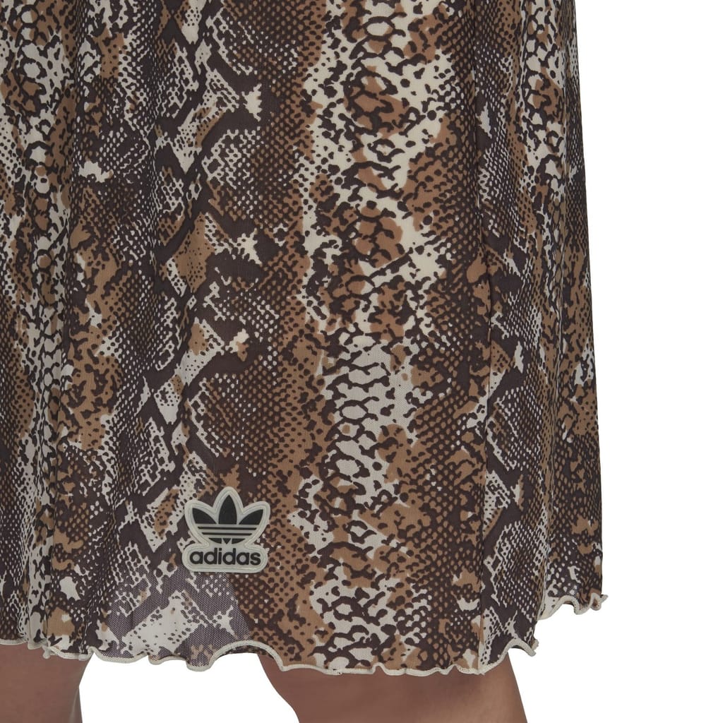 Elevate your wardrobe with this adidas Originals mini slip dress. Featuring a scoop neckline and slim fit, it boasts mesh details and a striking snake pattern. The straight hem and spaghetti straps add a touch of elegance, while the iconic logo embellishment showcases brand authenticity. -