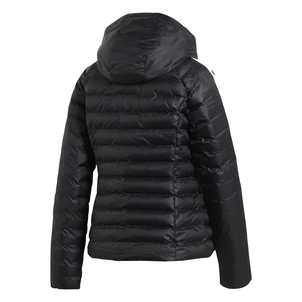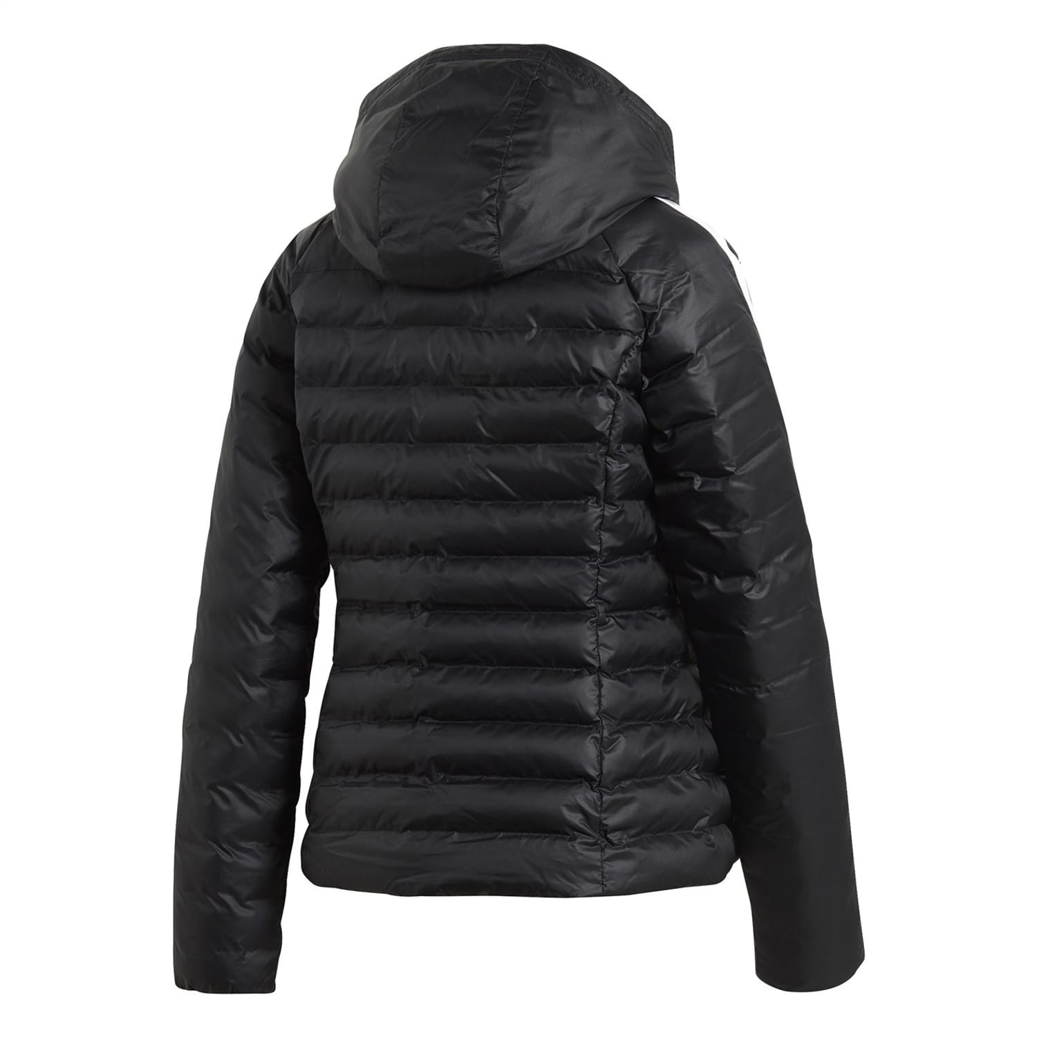 Stay warm with the adidas Originals puffer jacket. This slim fit, short length piece features a hooded neckline and a convenient zipper closure. The lightweight design is complemented by a striped pattern and a distinctive logo embellishment. -