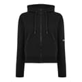 Stay comfortable and stylish with this Reebok sweatshirt. Designed for training and gym activities, it features a hooded neckline and long sleeves for added warmth during autumn and winter. Crafted in a regular fit with a ribbed hem and ribbed cuffs, this solid hoodie has a convenient zipper closure. Part of the activewear collection, it includes a logo embellishment for a sporty look. -