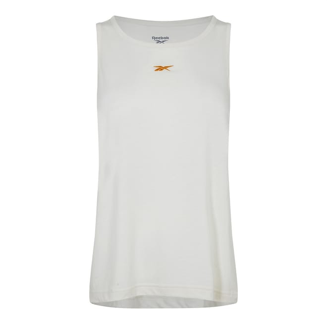 This Reebok maternity tank top is designed with a relaxed fit for ultimate comfort. It features a crew neck and is sleeveless, perfect for sports activities. The solid pattern adds a sleek look, while the logo embellishment adds a touch of brand flair. -