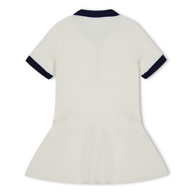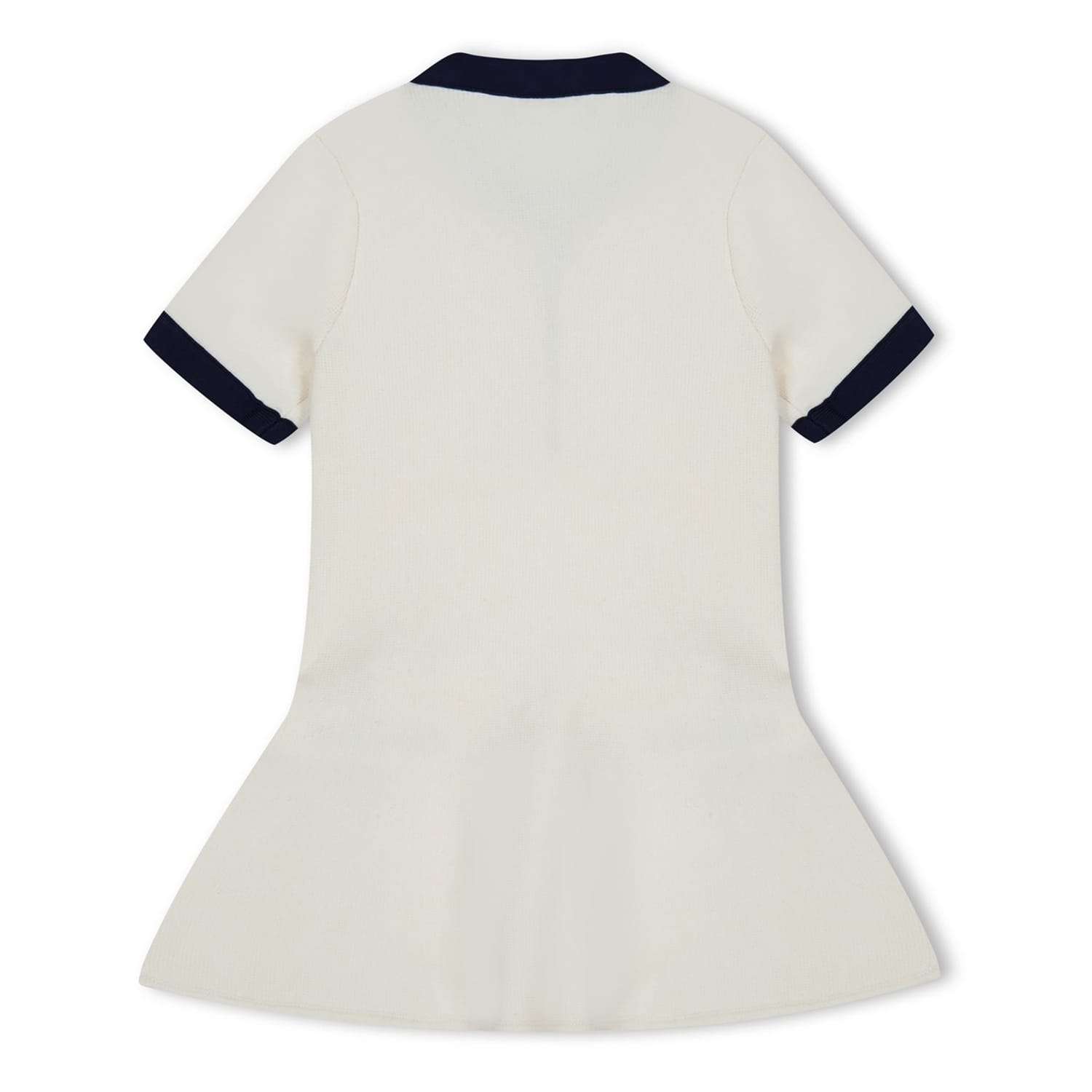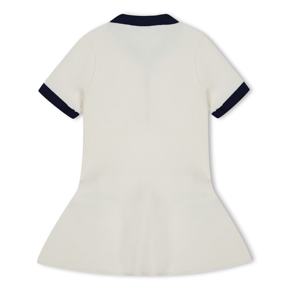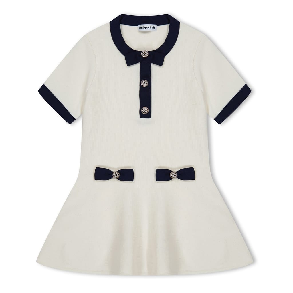 This Self-Portrait mini dress features a classic polo collar and a collared neck, offering a sophisticated touch. Crafted in a knit fabric, it showcases a solid pattern with a charming bow embellishment. The dress has a regular fit and an A-line style, complemented by short sleeves and a button closure for a refined finish. -