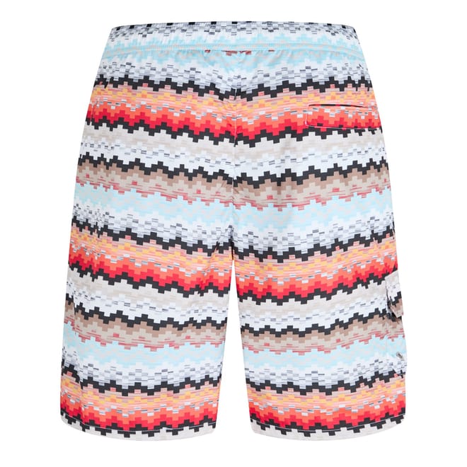 - Cut to a regular fit these swim shorts boast two side pockets for ease of access to your poolside essentials. Designed in an all over zig-zag print in a vibrant hue these swim shorts are infused with the spirit of summer for a fun finish. -