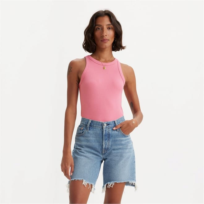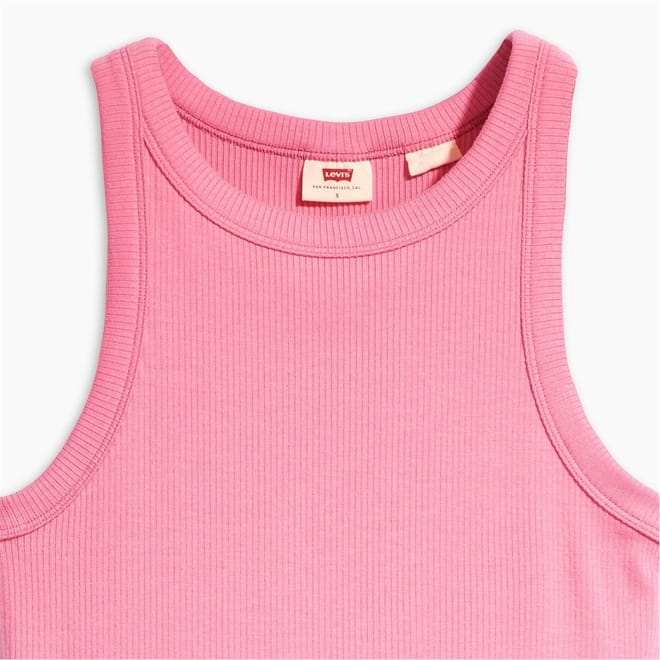 Embrace casual style with this Levi's tank top from the Barbie collection. It features a sleeveless design and a classic crew neck. The solid pattern and slim fit make it a versatile addition to your wardrobe. -