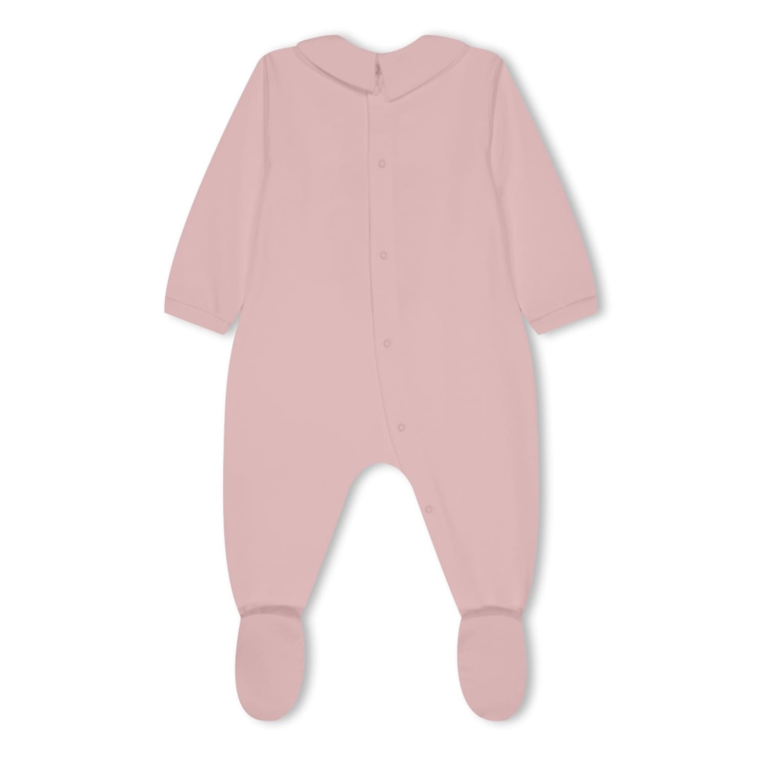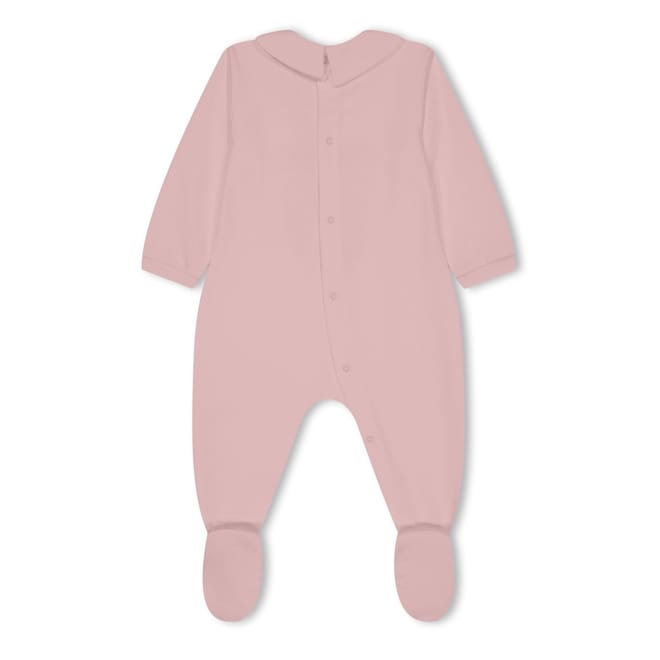 Moschino presents its exquisite Bear All In One 3-Piece Set: the perfect way to spoil your little bundle of joy. Crafted in the softest cotton jersey, this set includes a charming romper with a matching bib and hat. Featuring a Peter Pan collar elegantly framed by long sleeves, the babies' onesie comes with a press stud placket on the rear to ensure easy on and off- while the attached booties add a practical touch. The bib- secured with snap buttons- offers convenience without compromising on style, and let's not forget the adorable ear detailing and turn-up brim on the hat, adding playfulness to bébé's ensemble.