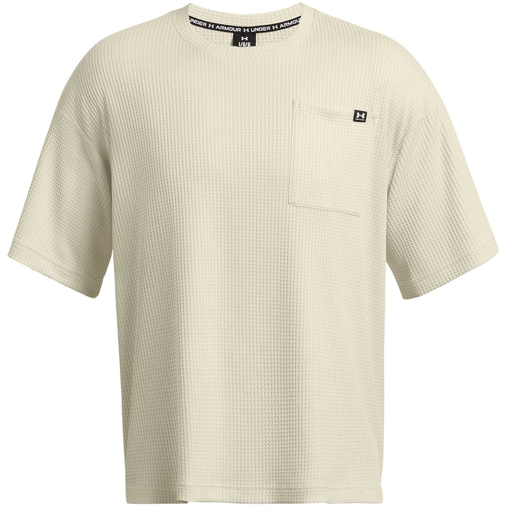 The Under Armour UA Rival T-shirt features a crew neck and a regular fit, perfect for casual outings. With its waffle pattern and short sleeves, this top offers a stylish yet comfortable option. Additional features include a logo and a convenient pocket, making it a versatile choice for everyday wear. -