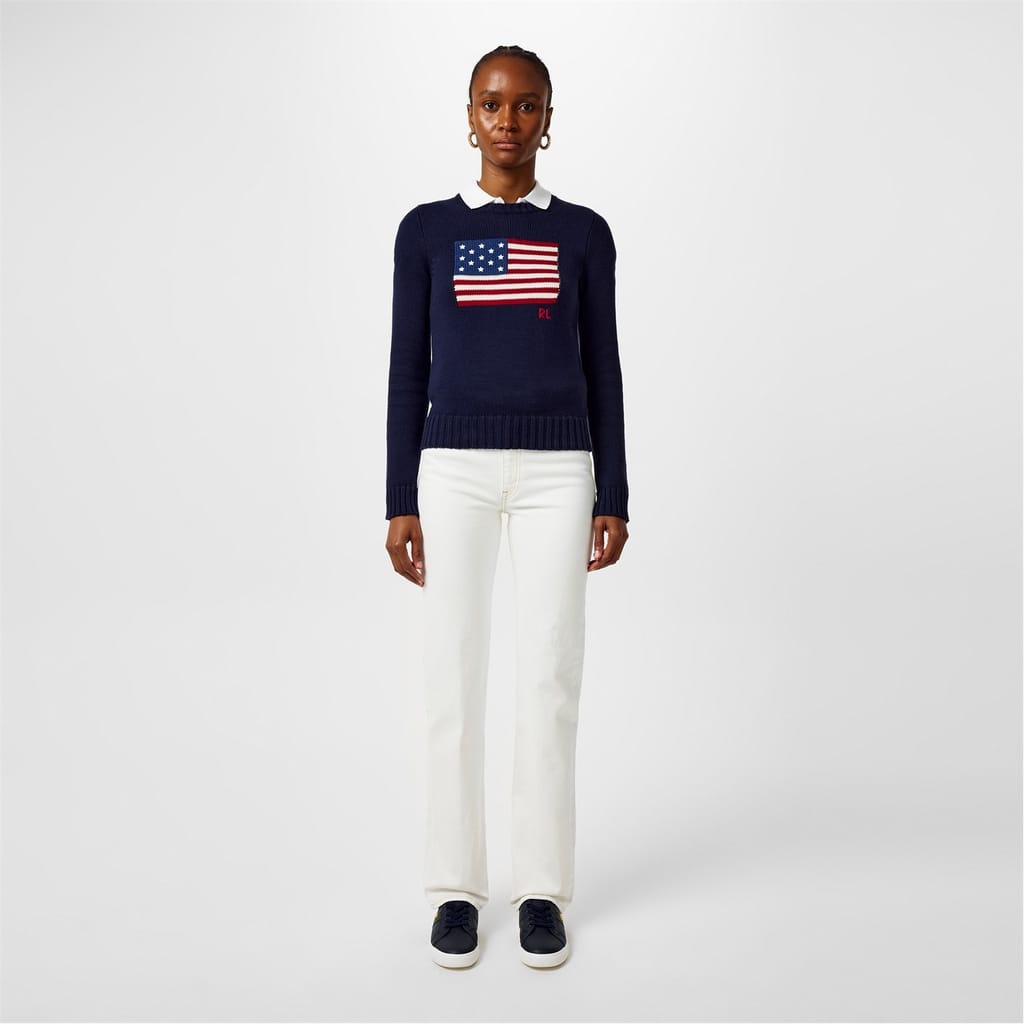 Defined with the house's signature all-American style, the Polo Ralph Lauren Iconic Flag Sweater is designed to become a standout staple in your collection. Not just for the 4th of July, this knitted jumper radiates the charm of the red, white, and blue at casual hangouts and chic brunches alike.