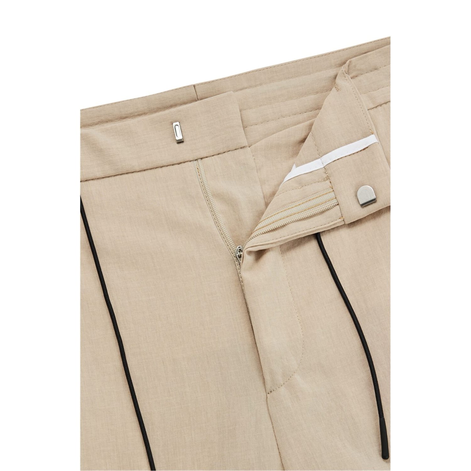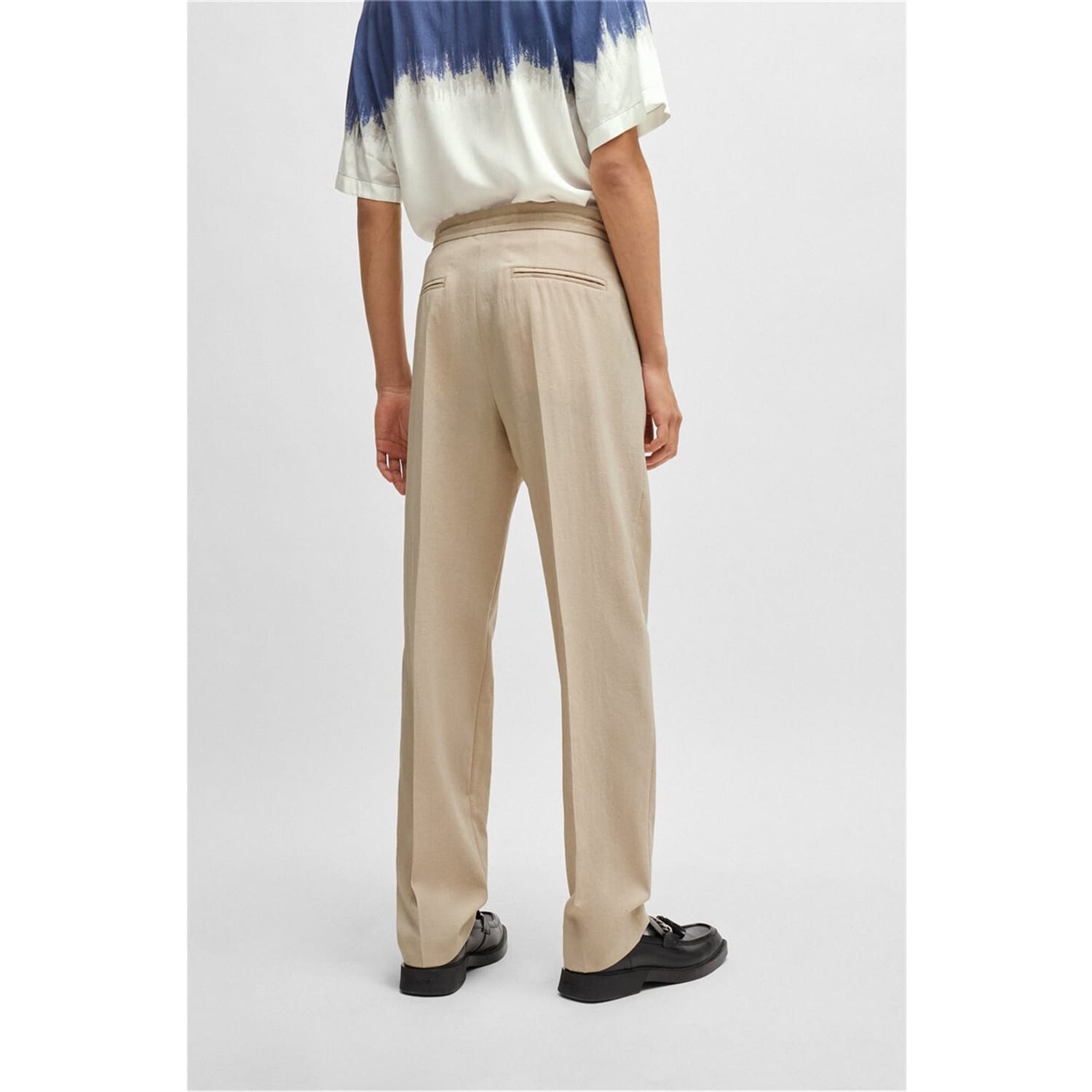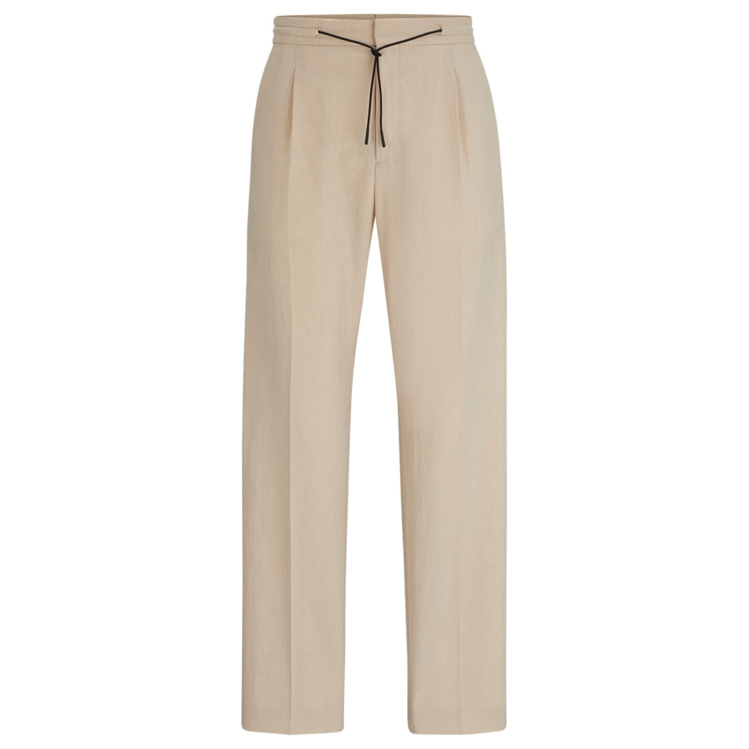 Discover the refined elegance of Hugo trousers, featuring a pleat design for a sophisticated touch. These pants offer a practical drawstring closure, complemented by a zip fly for added convenience. Perfect for those seeking a blend of style and functionality in their wardrobe. -