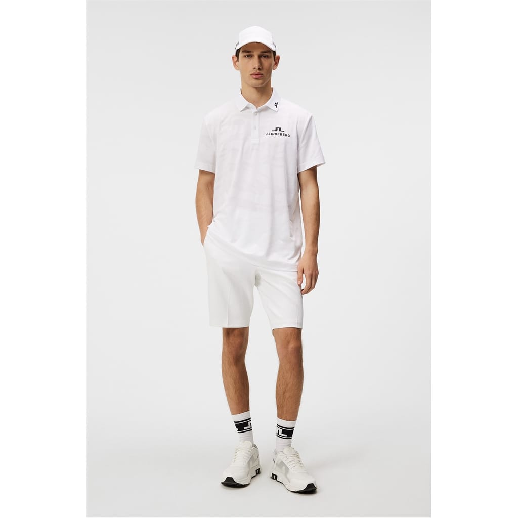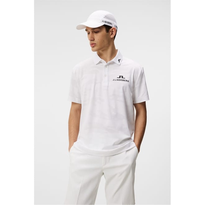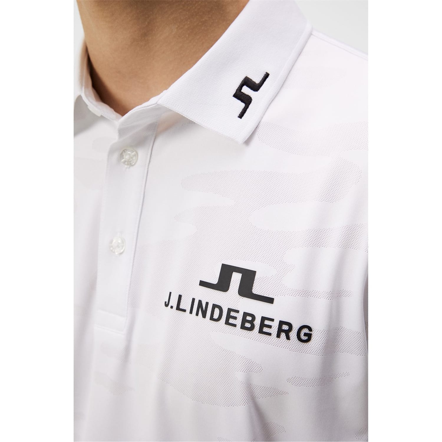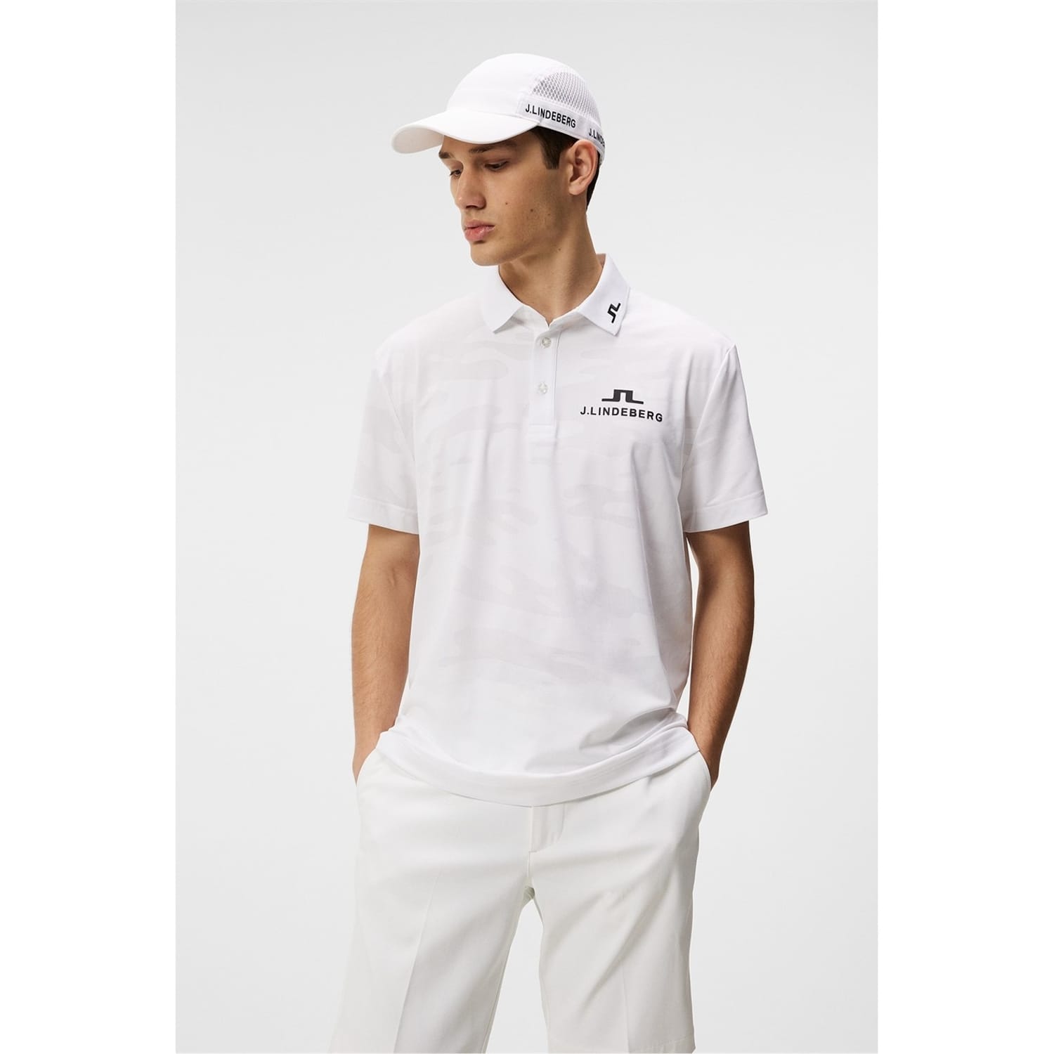 Introducing the J.Lindeberg polo shirt in a stylish camo pattern, designed for semi-formal occasions. This top features a classic polo collar with a button closure and short sleeves, ensuring a comfortable regular fit. Made with performance attributes, it showcases a subtle logo embellishment, adding a touch of sophistication to your attire. -