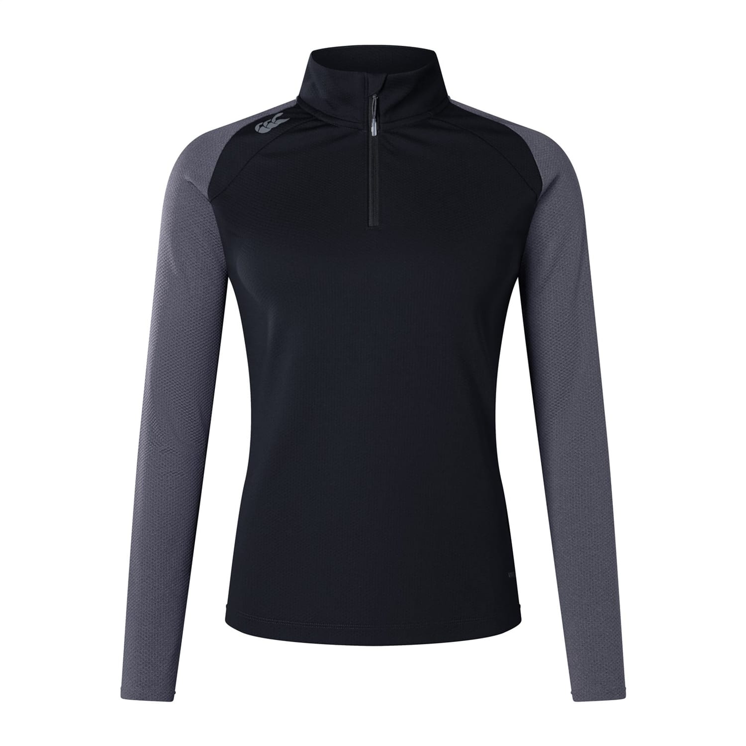 Elevate your athletic wardrobe with the Canterbury long-sleeve t-shirt. This slim-fit, solid-patterned top features a practical zip neck and raglan sleeves for optimal movement. Crafted as a base layer, it includes a discreet logo embellishment. Perfect for layering, this t-shirt from Canterbury is designed to keep you comfortable and stylish during your workouts. -
