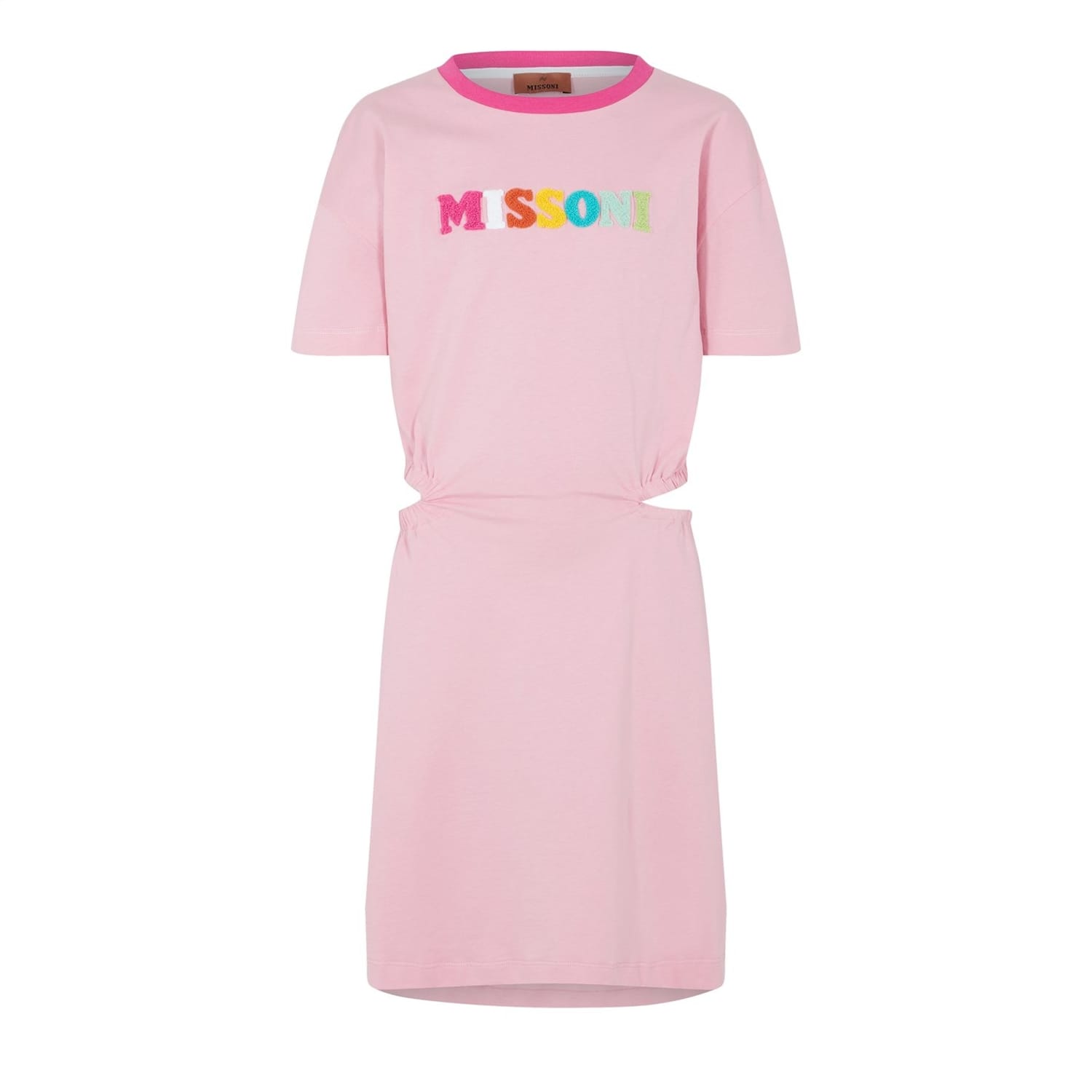 Add some colour to your little one's wardrobe with the Missoni Logo Dress. A master of captivating designs, renowned for vibrant hues and striking graphic prints, Missoni are always guaranteed to add a playful touch to any ensemble. This lightweight cotton jersey dress features striking cut-out detailing and contrasting ribbed trim, adding a touch of contemporary charm to its classic silhouette.