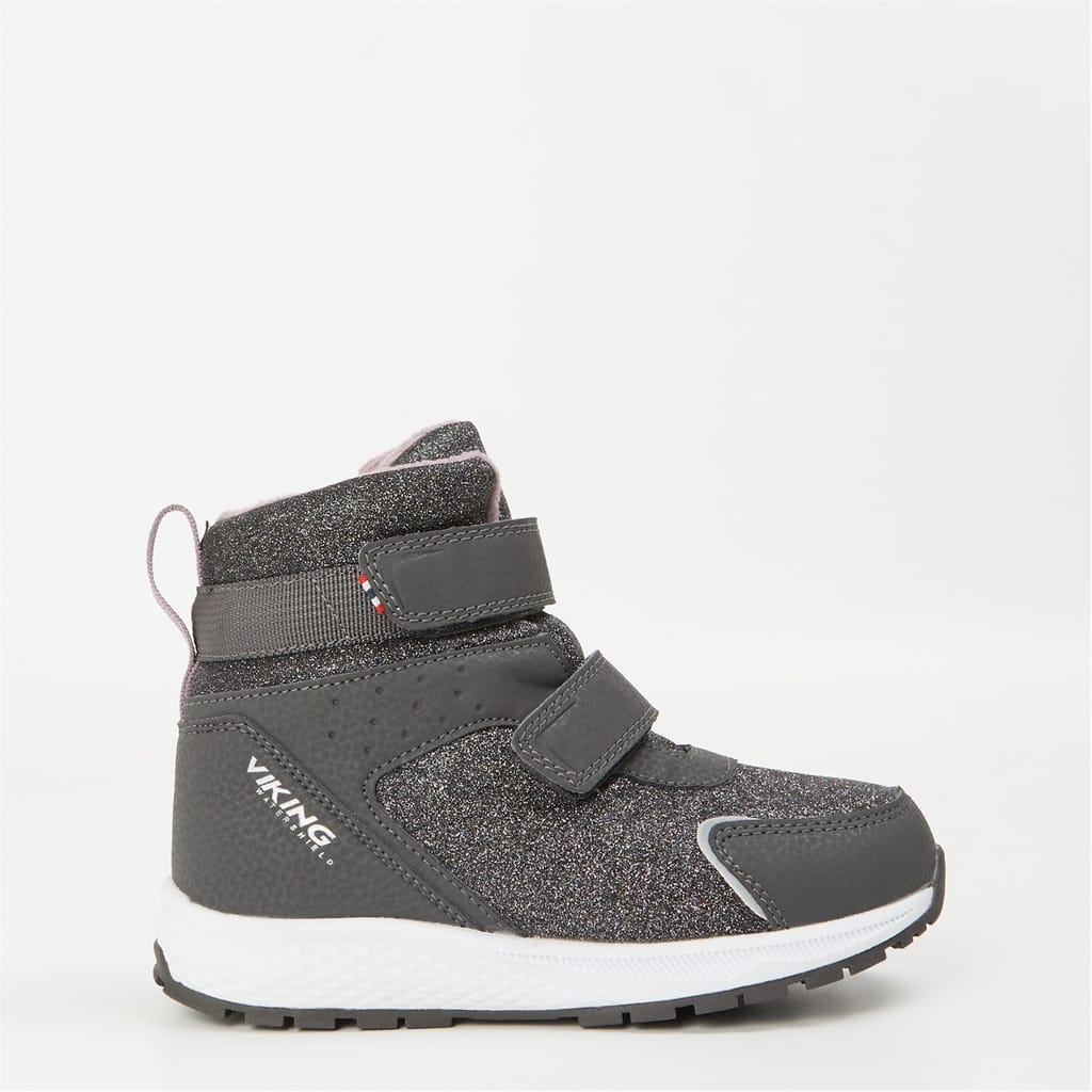 Discover the Viking hiking boots, expertly crafted for outdoor adventures. These leather boots feature a round toe design, ensuring comfort and durability on rugged terrains. The metallic pattern adds a modern touch, making them both functional and stylish. Perfect for those who seek reliability and style in their outdoor footwear. -