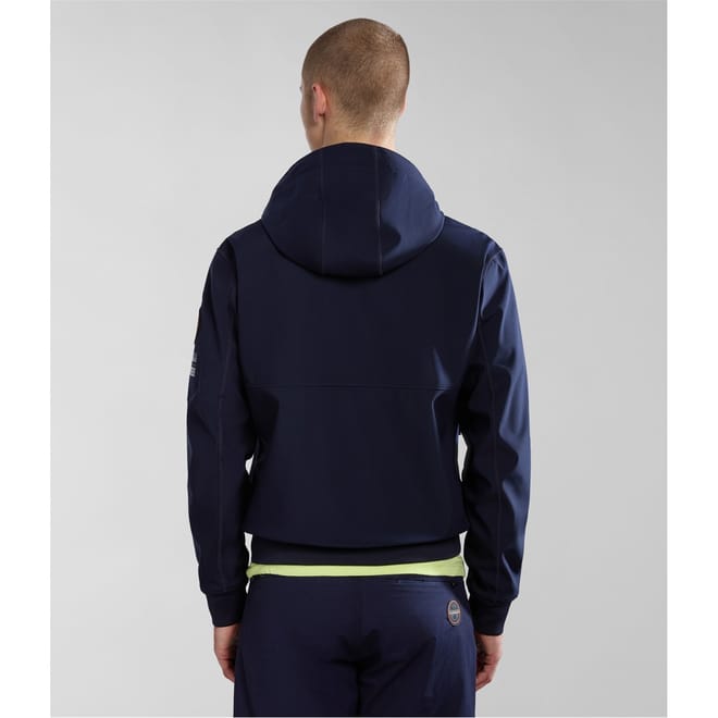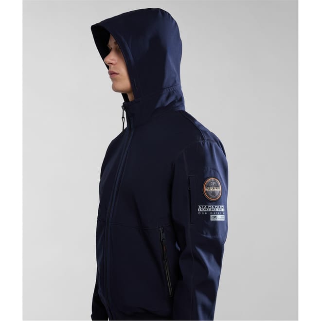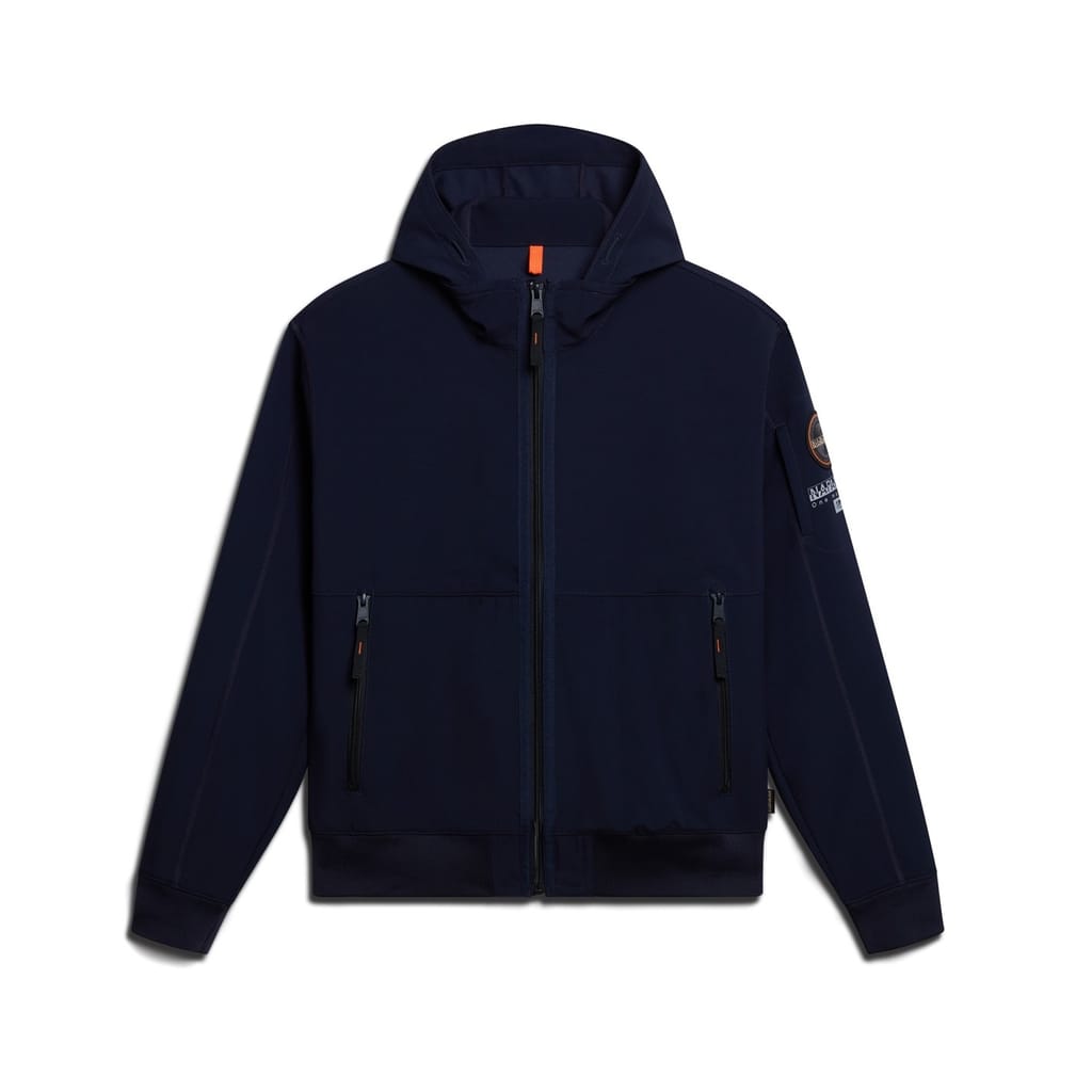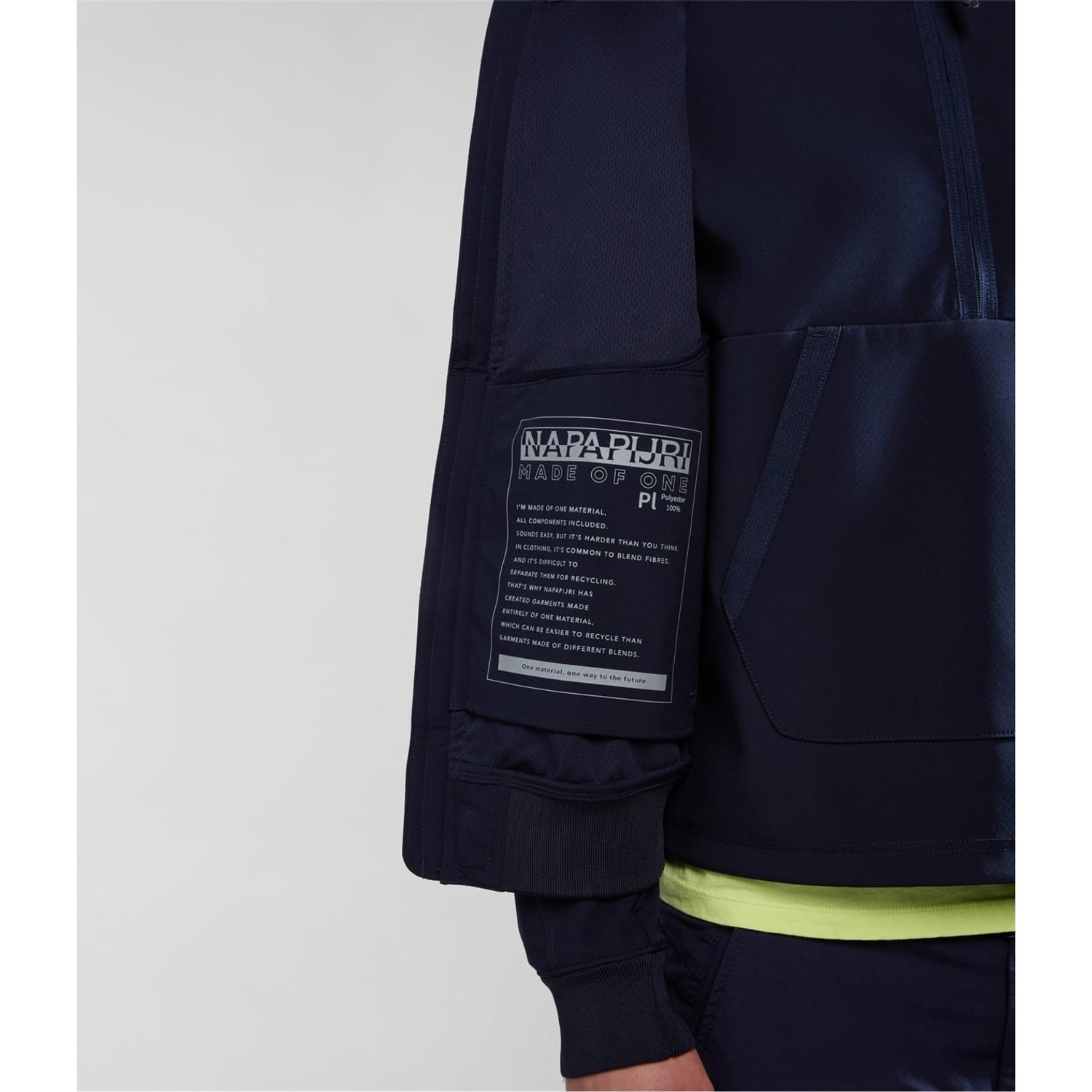 Stay protected with this Napapijri windbreaker jacket from the outerwear collection. Featuring a hooded neckline and a convenient zipper closure, this solid-colour jacket ensures a regular fit and long length for optimal coverage. Embellished with a distinctive logo, patch pocket, and logo patch, it's a stylish yet functional addition to your wardrobe. -