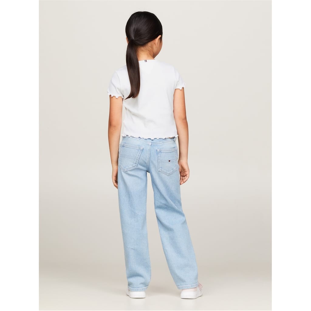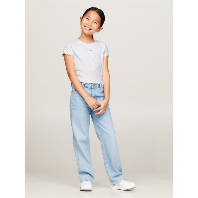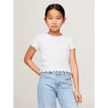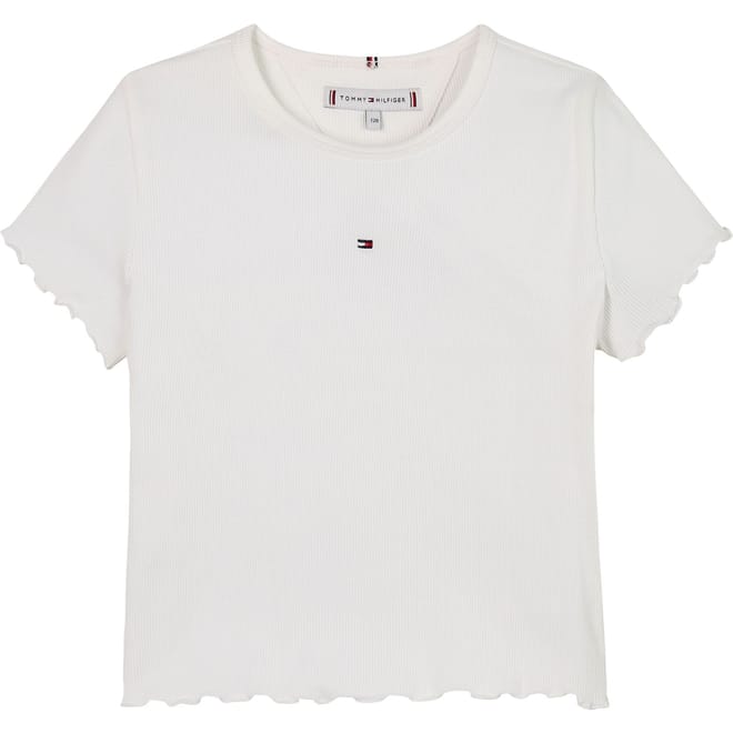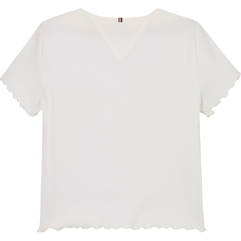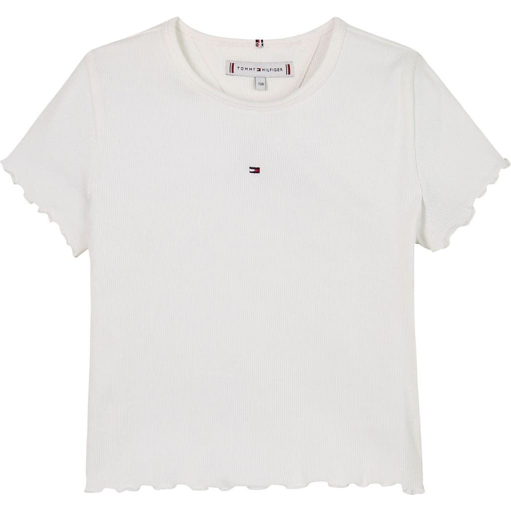 Discover the casual charm of this ribbed T-shirt from Tommy Hilfiger. Featuring a classic crew neck and short sleeves, this top ensures comfort and style for your everyday look. Its regular fit provides a relaxed silhouette, making it a versatile addition to your wardrobe. Perfect for those seeking a blend of simplicity and elegance in a casual top. -