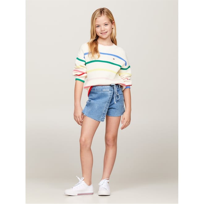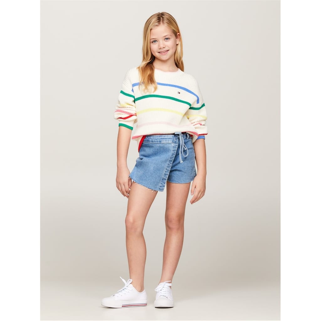 Tommy Hilfiger Kids' Denim Shorts feature American fashion styling with structured detailing for youth and children. The jean design includes an engineered waistband for optimal fit and practical pockets for casual daily wear during summer.