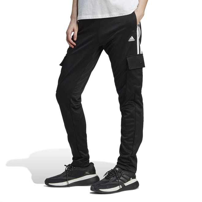 - Equipped with front zip pockets and cargo pockets with snaps, these bottoms offer plenty of storage for your essentials. The ankle zips allow for easy on and off, while the black colourway with white details makes these tracksuit bottoms effortless to pair with the rest of your ensemble. Featuring the iconic 3-stripes applied on the legs -