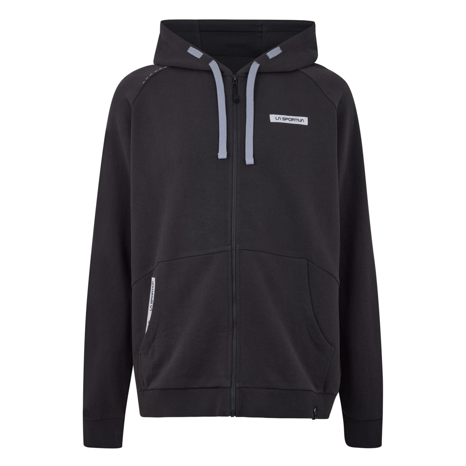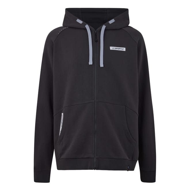 This La Sportiva hoodie sweatshirt is designed with a regular fit and long raglan sleeves. Featuring a front zipper and hood, it combines functionality with style. The sweatshirt includes practical embellishments like a logo and pocket. Ribbed cuffs add a touch of detail, making it a suitable option for sporting activities. -