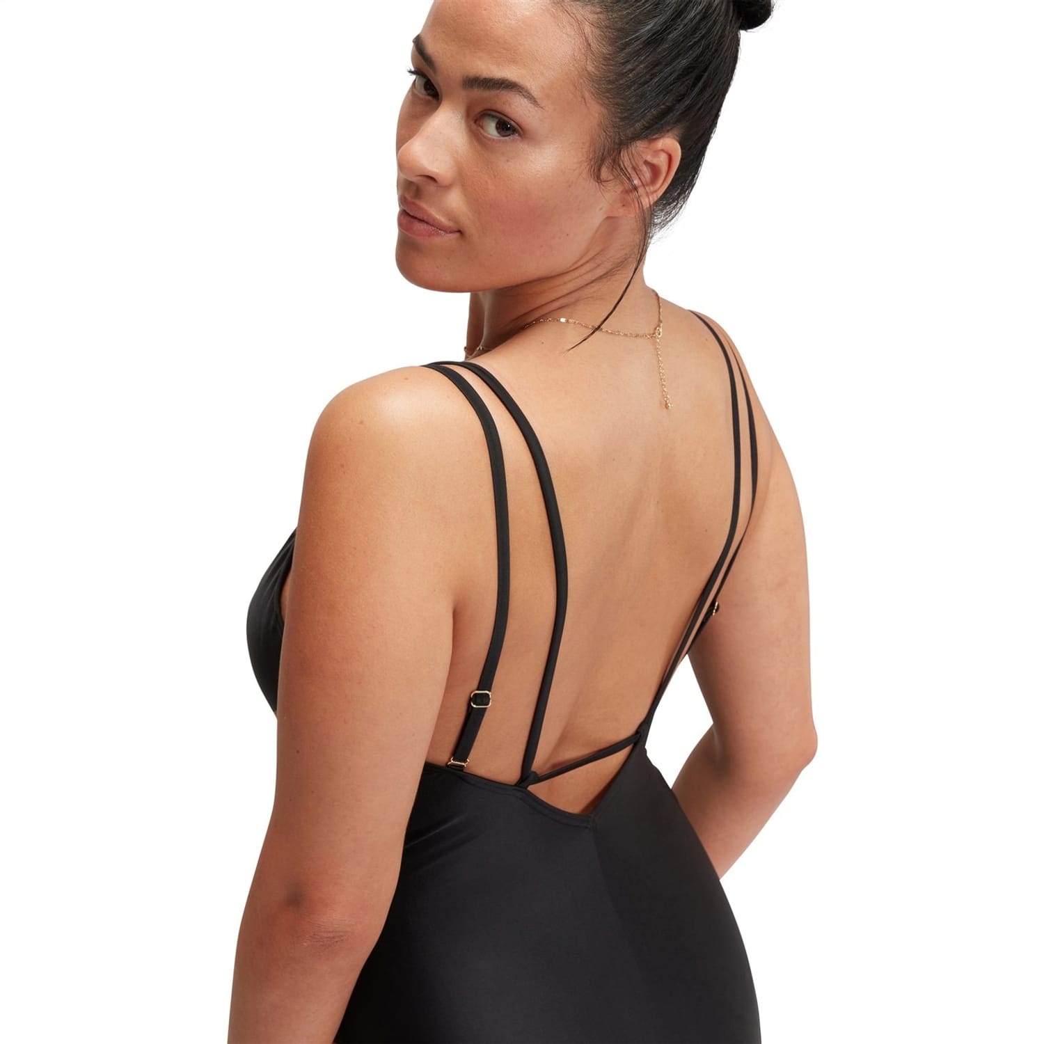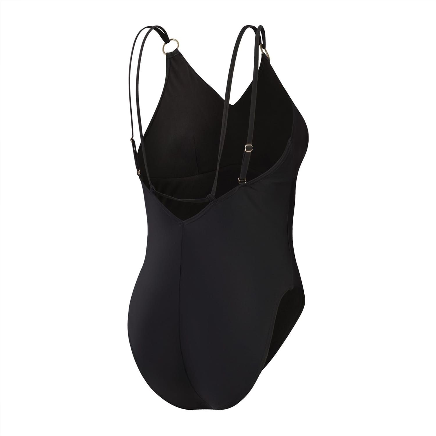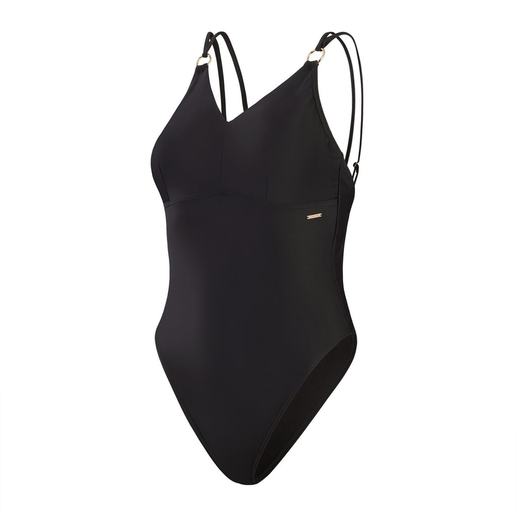 Crafted with a flattering V neckline, this sleek Shaping Swimsuit has a stylish twin-strap design for an elegant poolside look. Embossed gold branding upgrades your beach style, while the adjustable straps keep you comfortable and secure. Constructed seams and removable bra pads provide shape and bust support. Cut from our premium, comfortable body-shaping fabric, which works to smooth and contour the body, it’s ideal for the beach or pool. Offering higher chlorine resistance than standard swimwear fabrics, our new shaping fabric fits like new for longer with CREORA® HighClo™. The Nylon yarn in our new shaping fabric is also made from 100% pre-consumer waste, such as waste fabric from factories. -