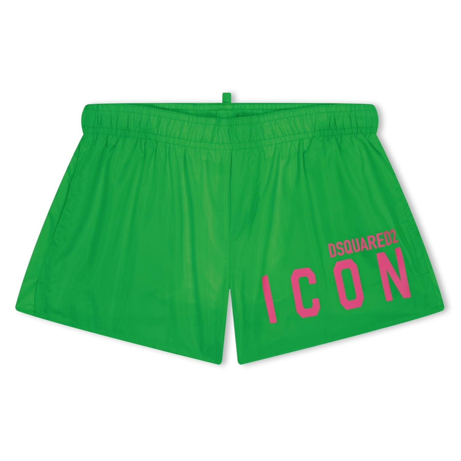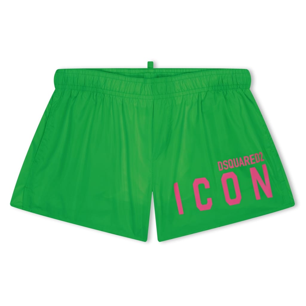 Dive into style with Dsquared2 swimwear, featuring a swim bottom designed for swimming activities. This piece showcases a graphic print with distinctive lettering and a logo embellishment. The elasticated waistband ensures a comfortable fit, making it a perfect choice for your swimming collection. -
