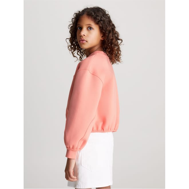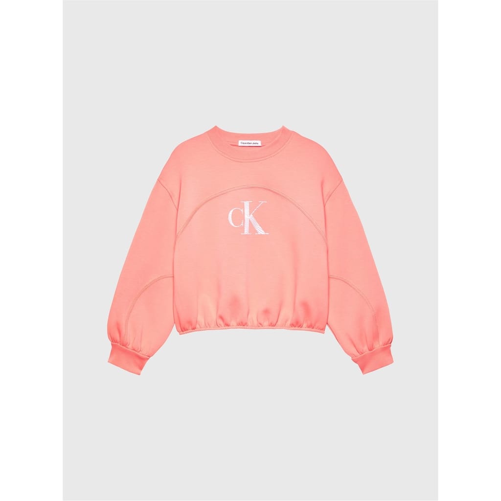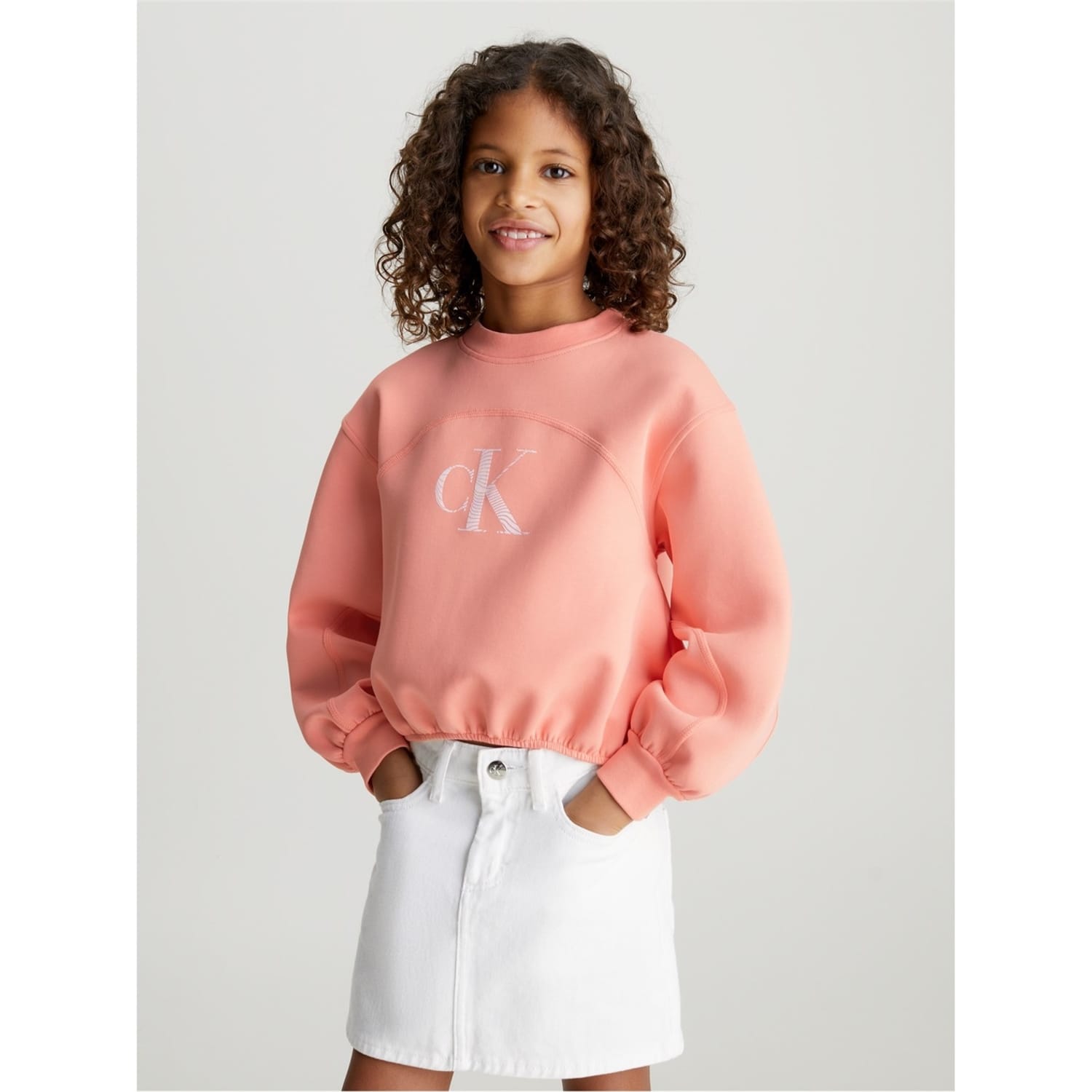 This Calvin Klein Jeans cropped top is perfect for juniors seeking a relaxed fit. Featuring a crew neck and long balloon sleeves, it offers a stylish yet comfortable look. The solid pattern is complemented by an embroidered logo, adding a touch of sophistication. Ideal for casual collections, this top effortlessly combines fashion and comfort. -