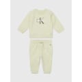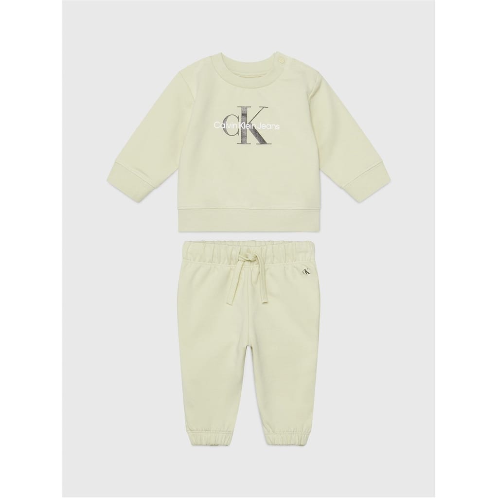 Dress your little one in comfort and style with the Logo Tracksuit Infants by Calvin Klein. Made from a luxurious blend of 95% cotton and 5% elastane, this tracksuit is the epitome of softness and durability. The sweatshirt features fastening with poppers on one shoulder, which allows for easy dressing and undressing. Showcasing a ribbed crew neck and ribbed cuffs which offer a snug and comforting fit. Finished in a solid block colouring and complete with the signature logo graphic on the front. Pair with the matching joggers which highlight an elasticated waistband and drawstring, ensuring a comfortable and snug fit for your little one. Fitted with dual side pockets provide ample storage for tiny treasures. Finished in a solid block colouring and complete with the iconic CK graphic to the leg signing off the look with a premium and sporty aesthetic.