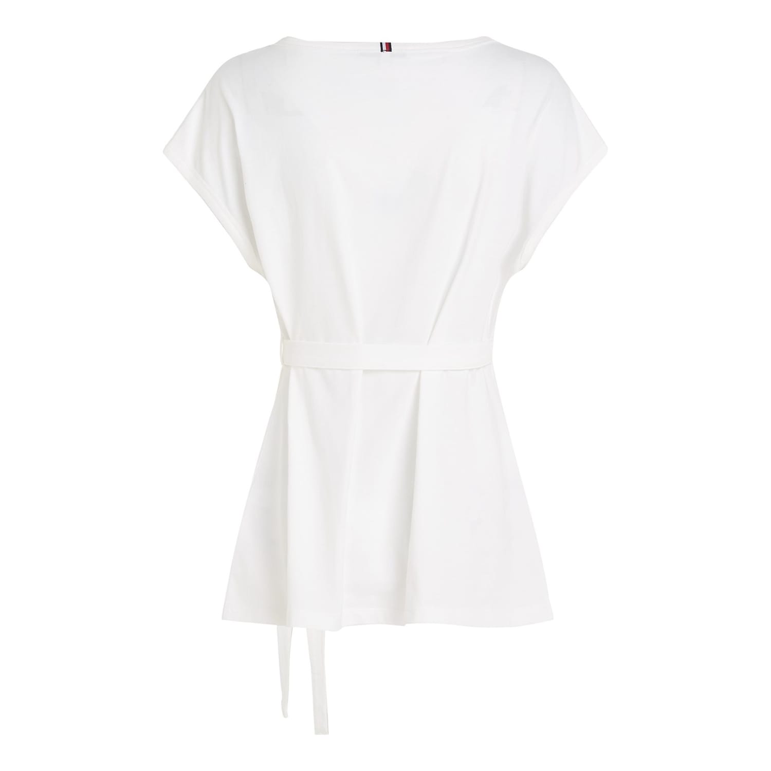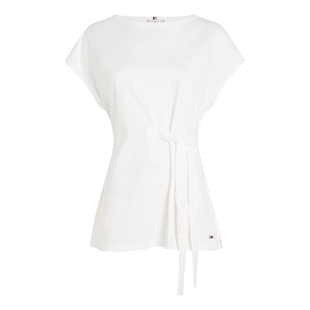 This Tommy Hilfiger blouse features a classic boat neck and short sleeves. Crafted in a regular fit, it offers both comfort and style. The solid pattern is elegantly accented with a subtle logo embellishment, making it a versatile addition to any wardrobe. -