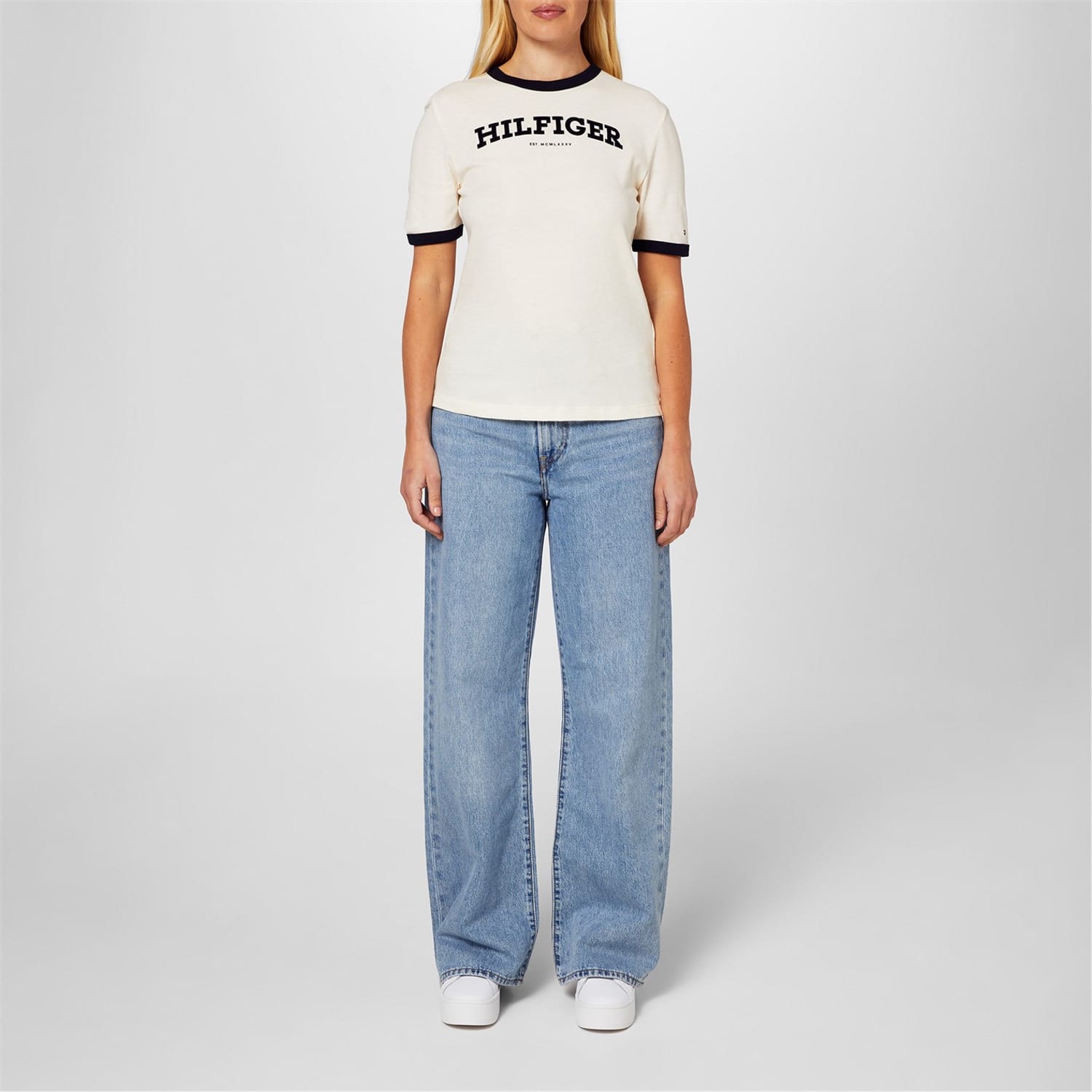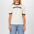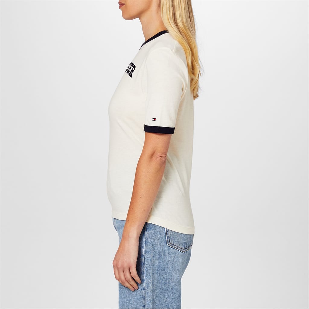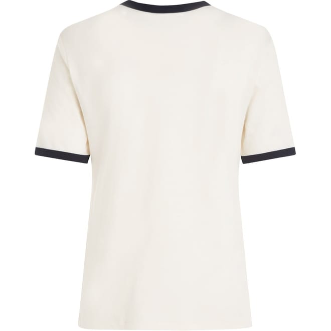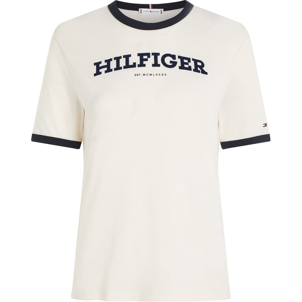 This Tommy Hilfiger t-shirt features a solid pattern with a crew neck and short sleeves. Designed for a regular fit, it is adorned with the iconic logo, making it a versatile addition to your wardrobe. -