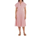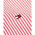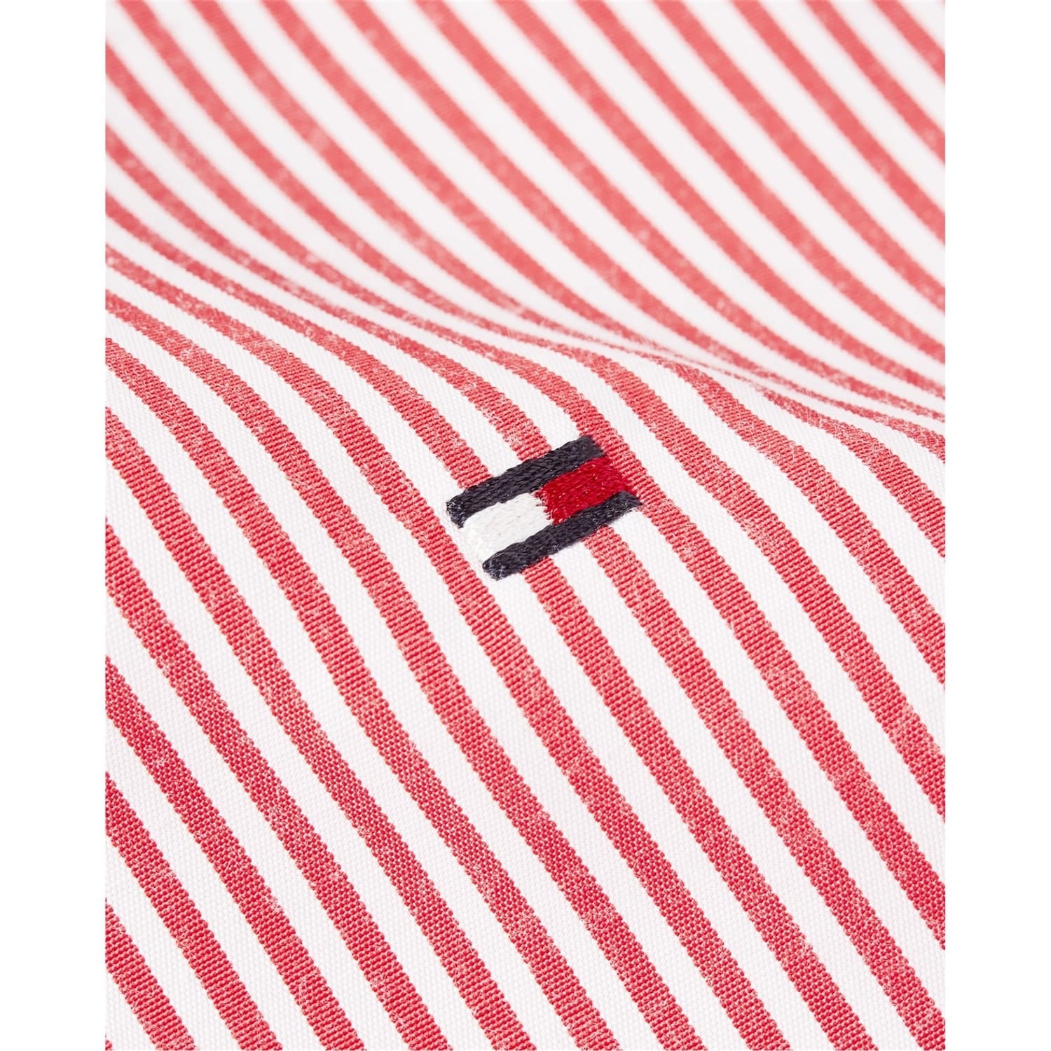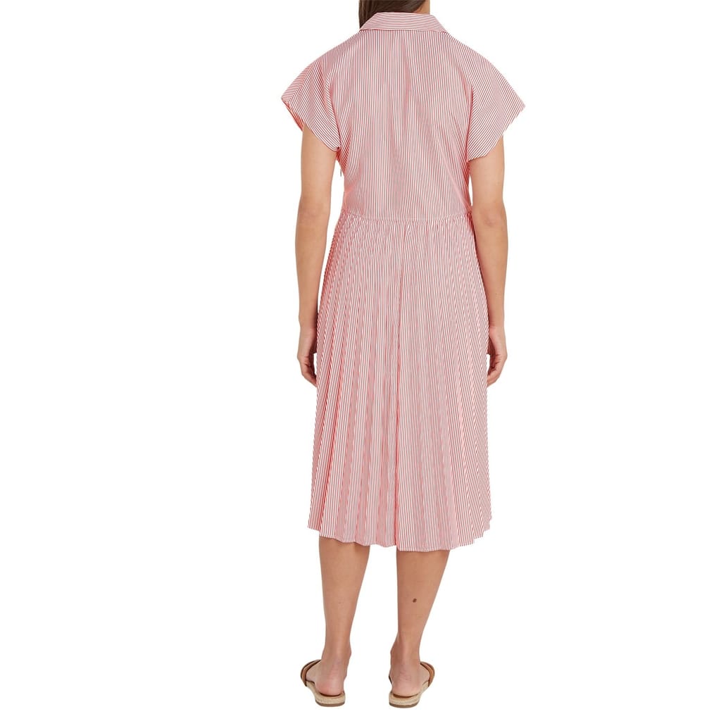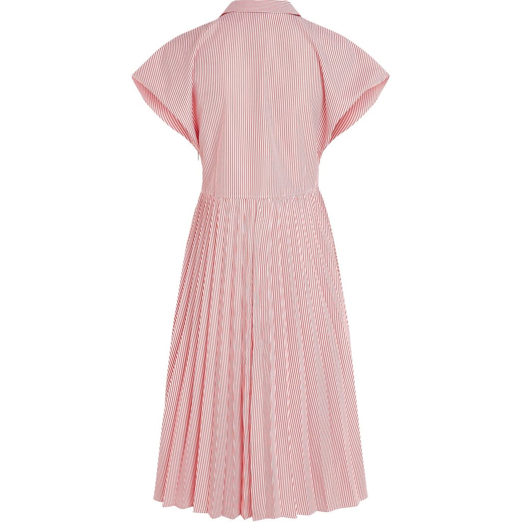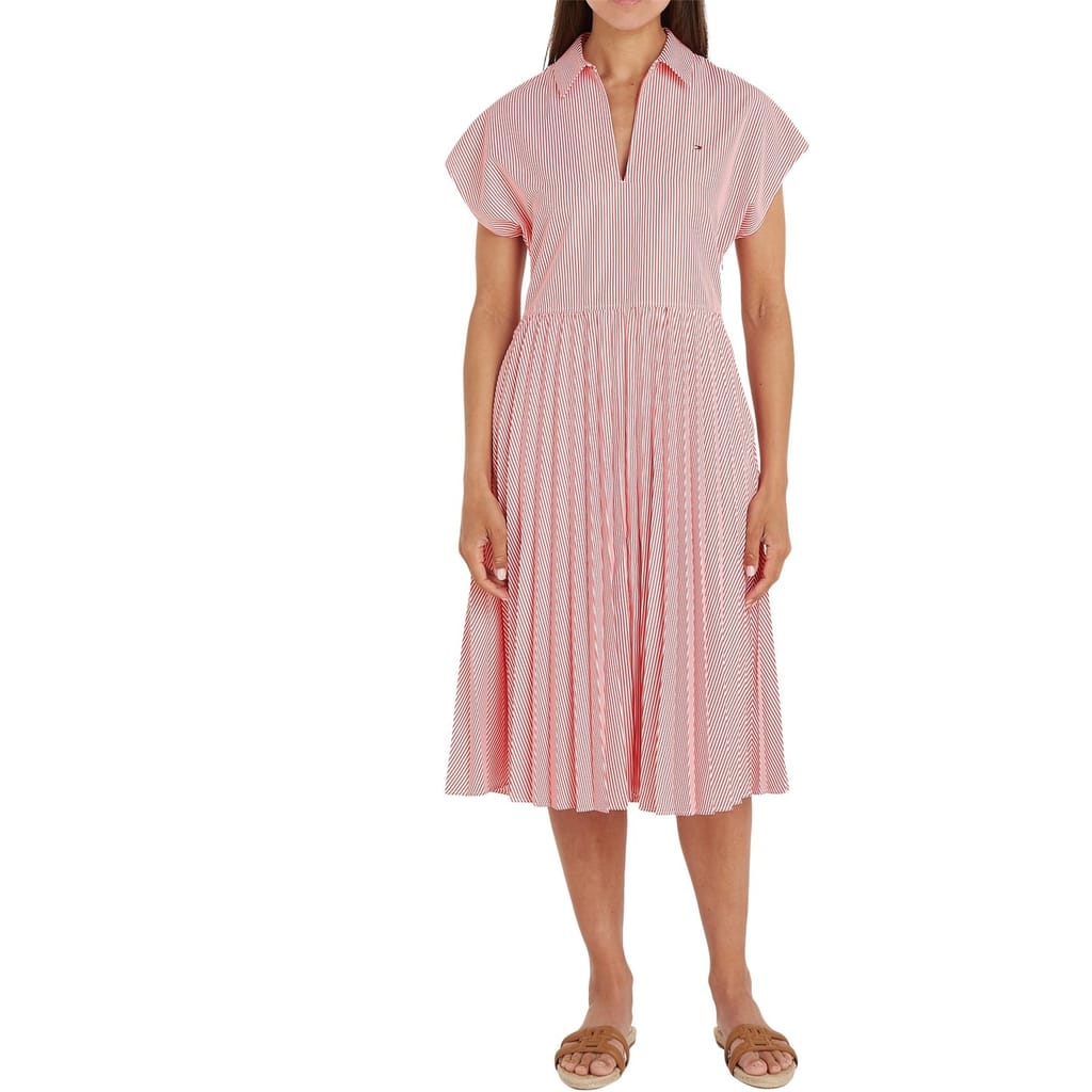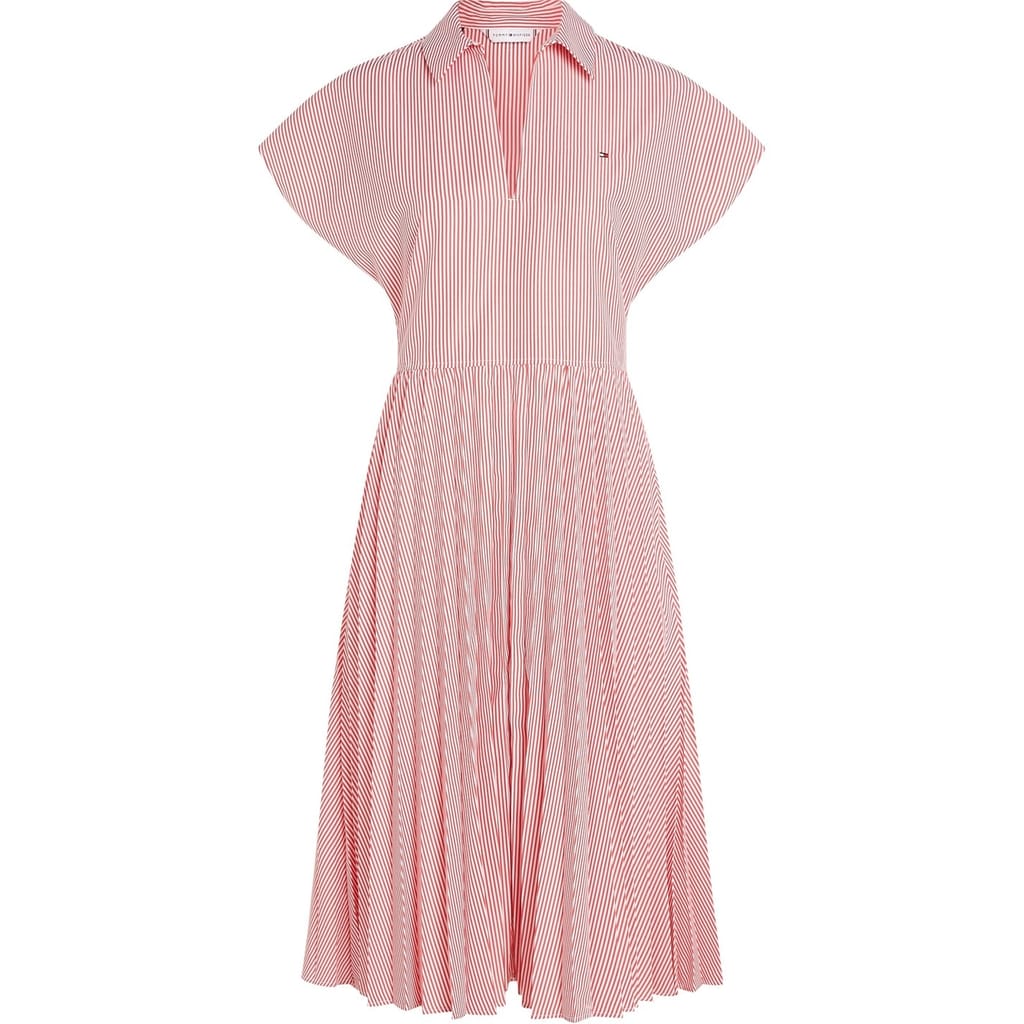 This Tommy Hilfiger shirtdress combines classic style with modern elegance. The midi-length dress features a striking stripe pattern and a collared neck with a shirt collar, offering a refined look. It has short sleeves and a regular fit, making it a versatile addition to any wardrobe. -