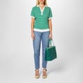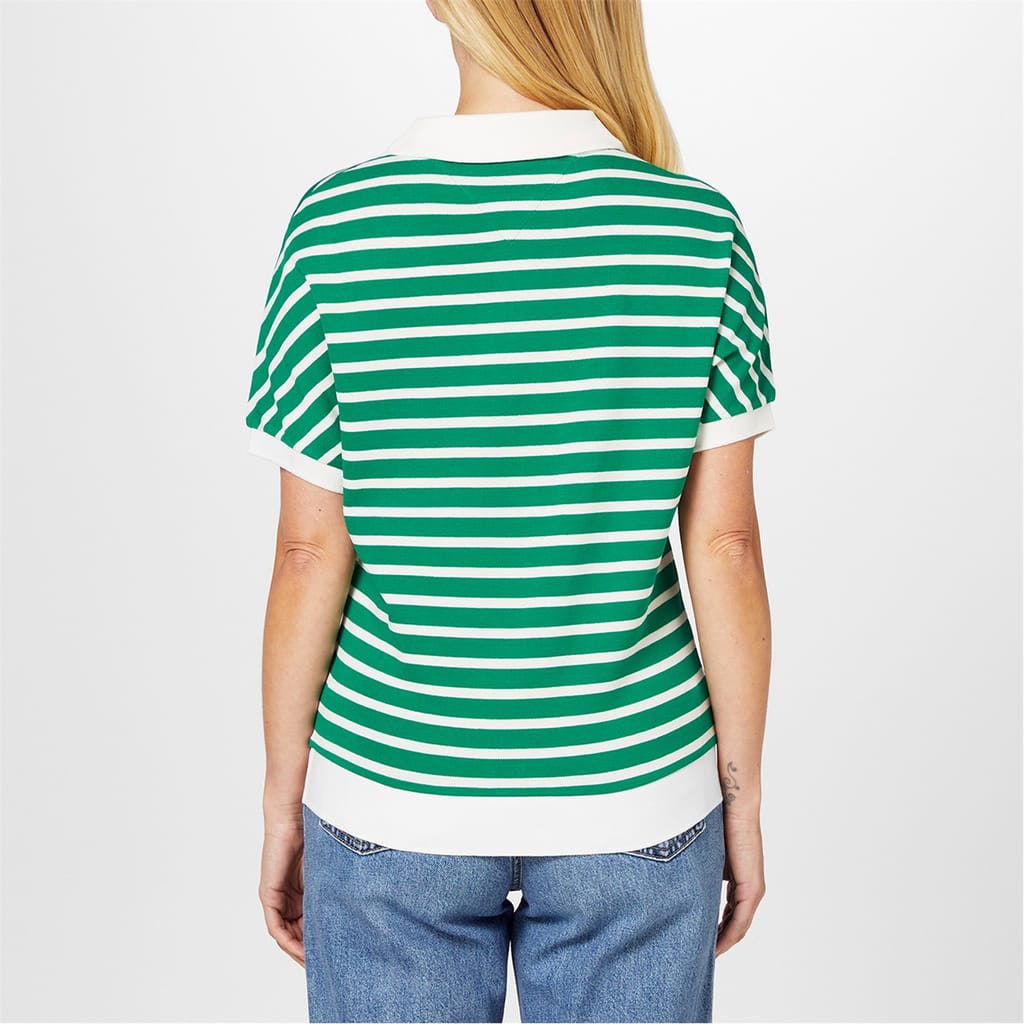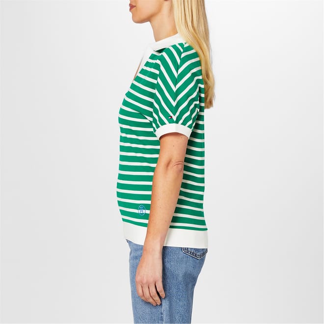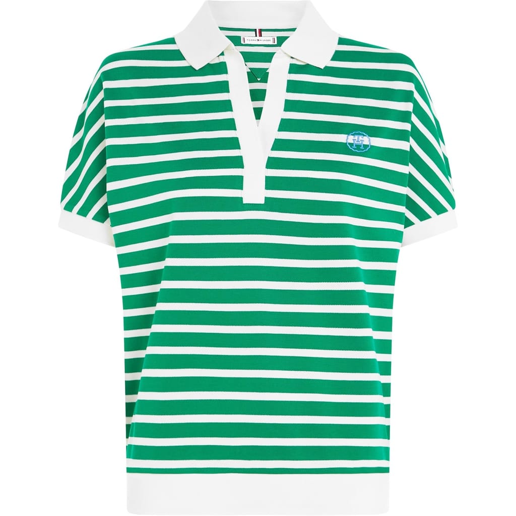 Elevate your semi-formal wardrobe with this Tommy Hilfiger polo shirt. Featuring a relaxed fit and short puff sleeves, this top exudes comfort and style. The horizontal stripe pattern adds a classic touch, while the ribbed cuffs and polo collar offer a refined finish. Complete with a signature logo, this shirt is perfect for a polished yet relaxed look. -