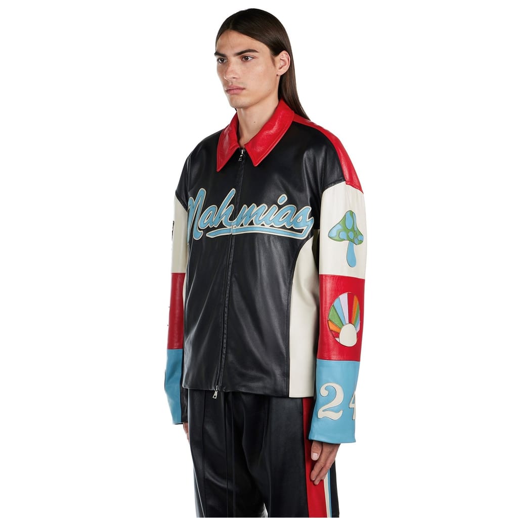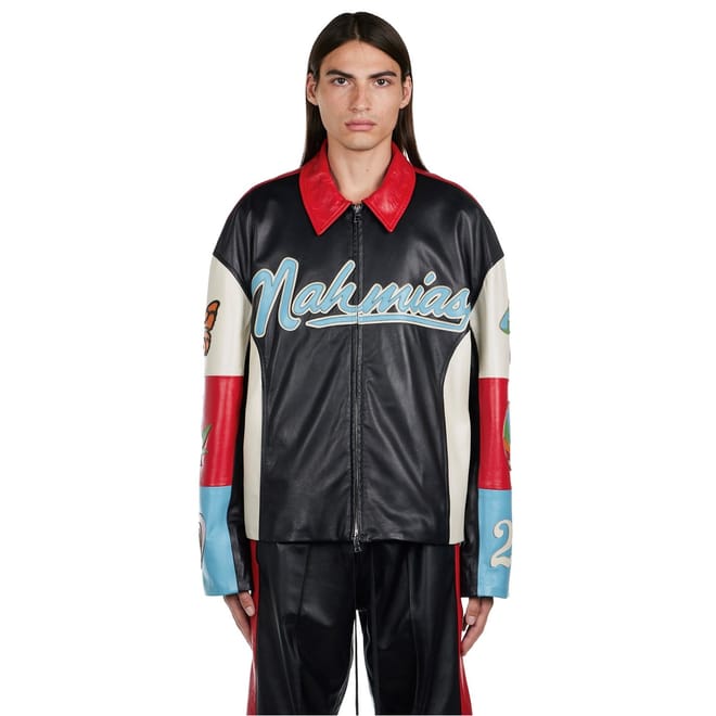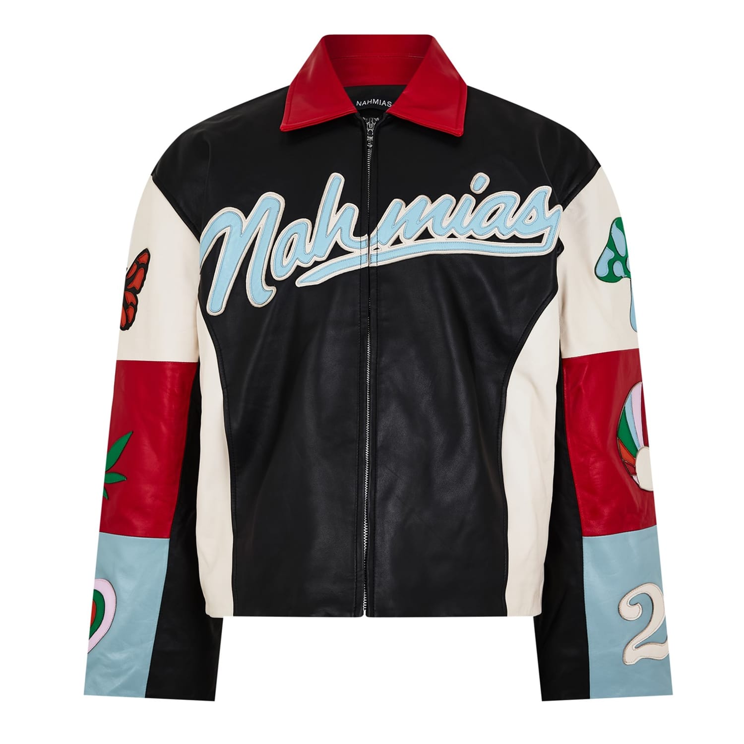 - Meticulously made with a colour-block panelled design showcasing Nahmias' commitment to innovative aesthetics, accentuating your refined sense of style. Featuring a logo patch on the front and decorative patches at the sleeve adding a touch of exclusivity to this exceptional -