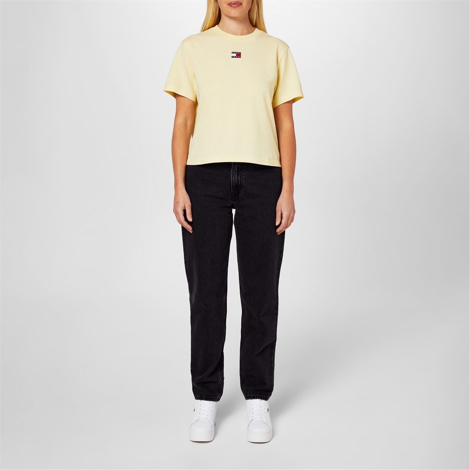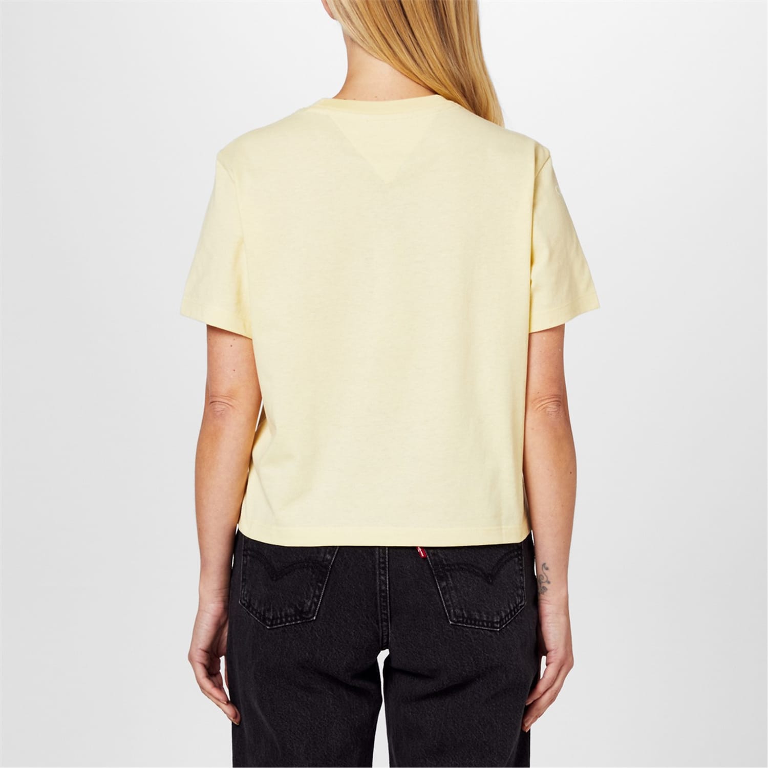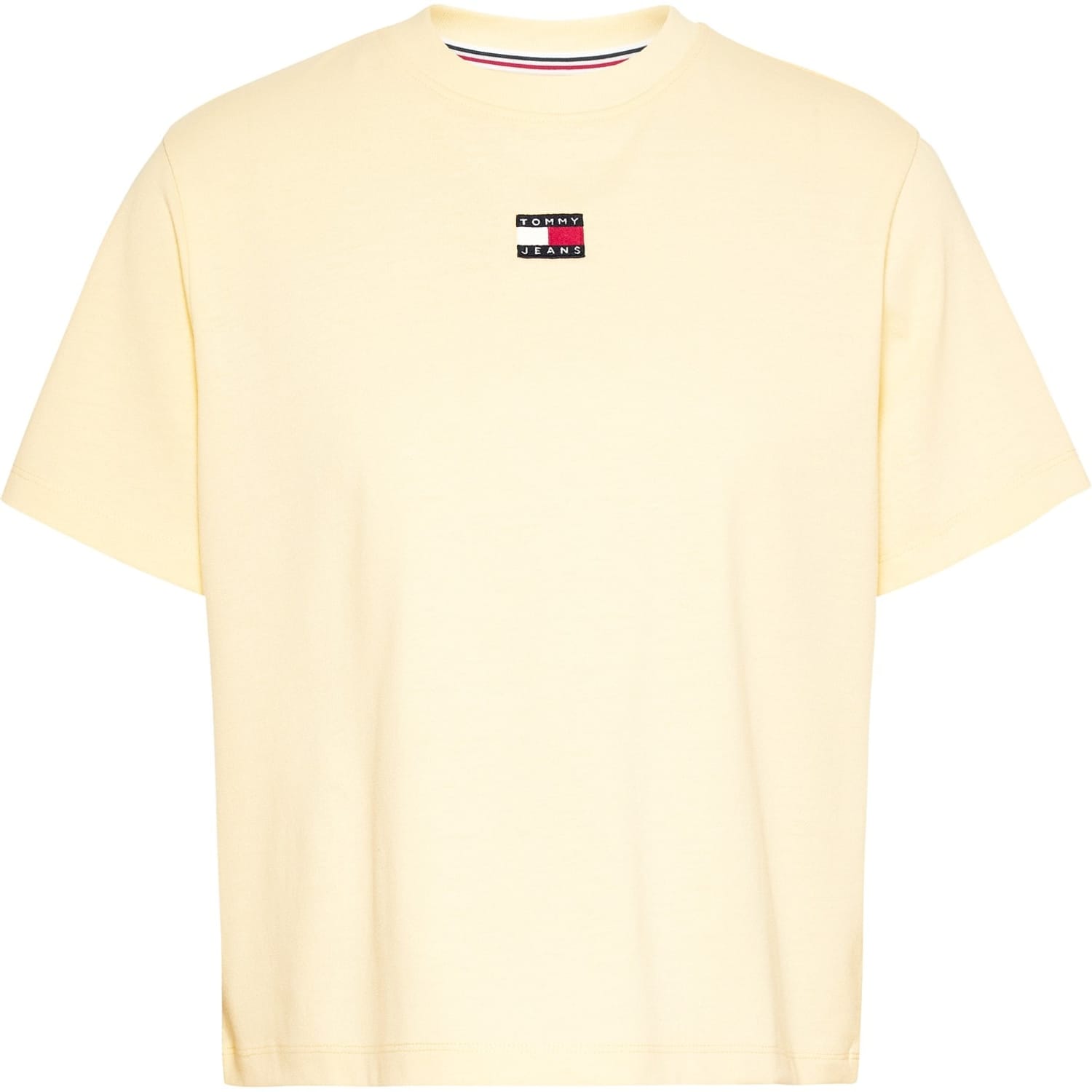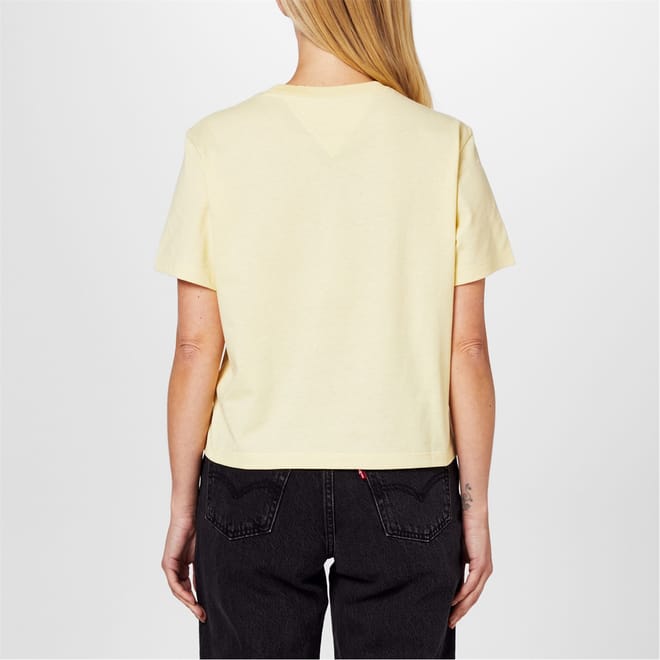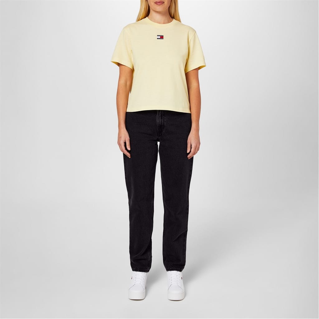 This solid t-shirt by Tommy Jeans features a classic crew neck and short sleeves. The regular fit ensures comfort, while the subtle logo embellishment offers a touch of brand recognition. Perfect for casual wear, this versatile piece is a wardrobe essential. -
