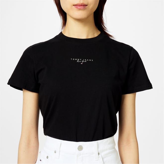 This Tommy Jeans T-shirt features a crew neck and short sleeves, offering a regular fit. The solid design is complemented by a subtle logo embellishment, making it a versatile addition to any wardrobe. Perfect for a casual, laid-back look. -
