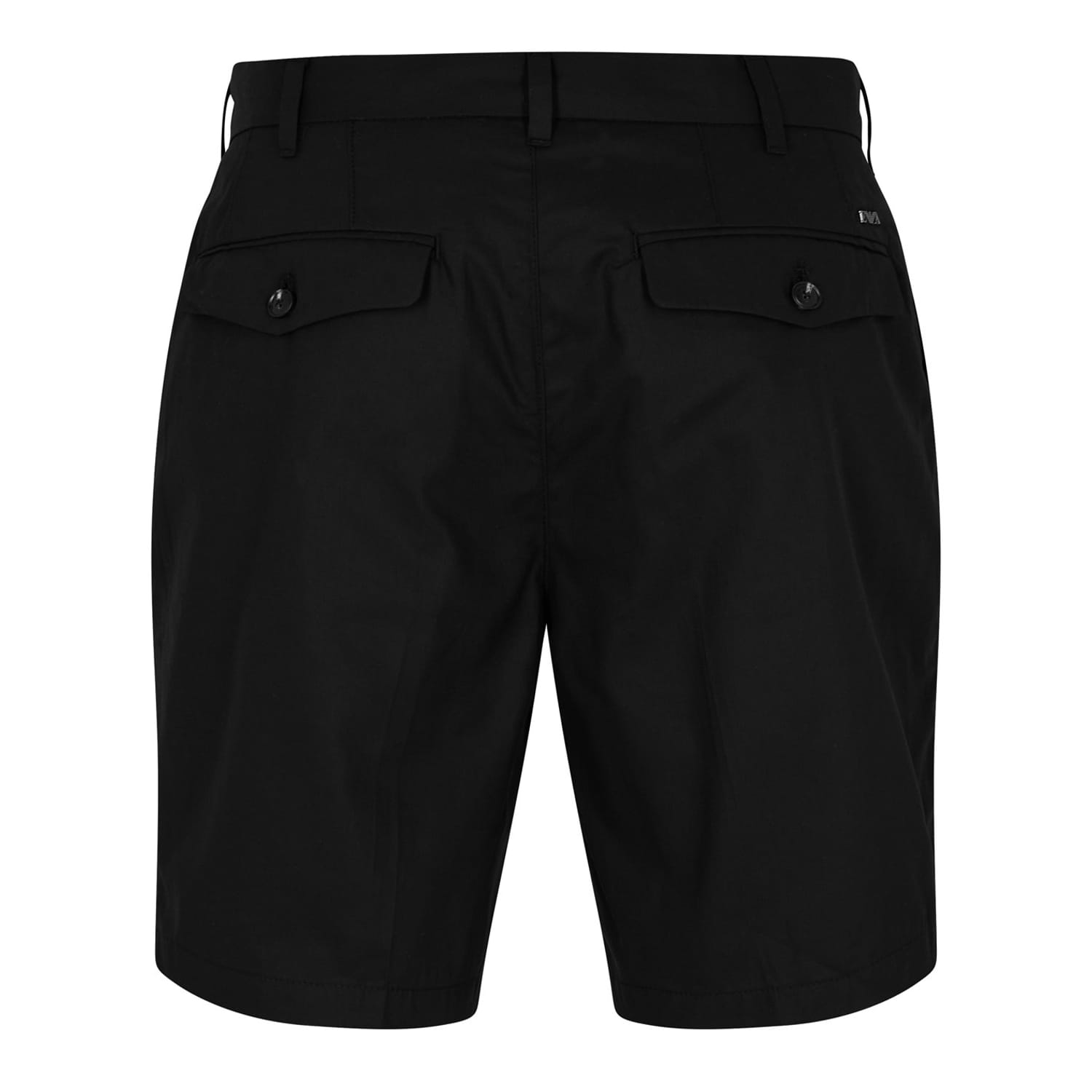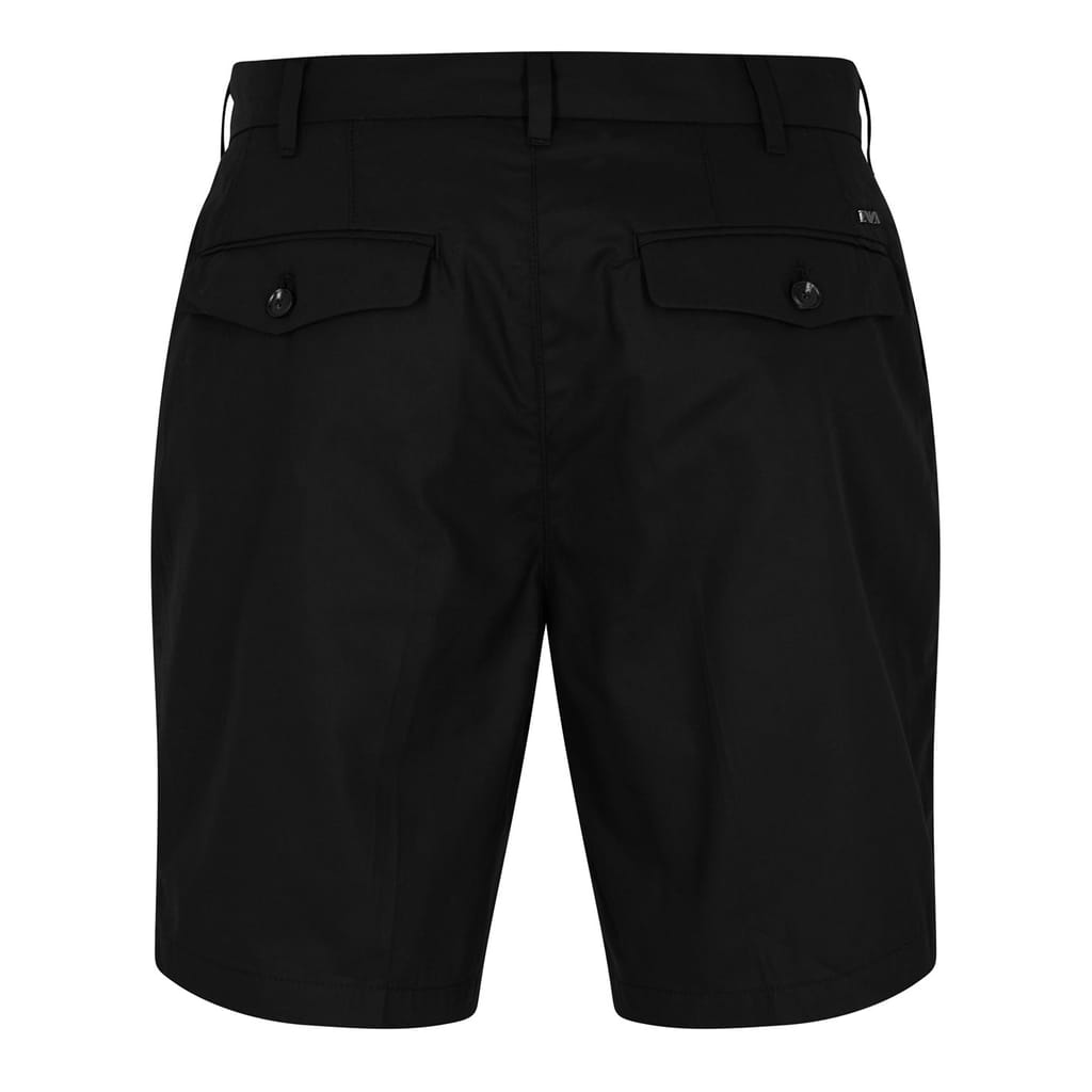 Emporio Armani EA7 shorts crafted from durable twill fabric. Featuring a button and zip fly closure, these solid-patterned shorts are adorned with a logo monogram and pleat detailing. Functional elements include pockets and two back pockets, making them a versatile choice. -