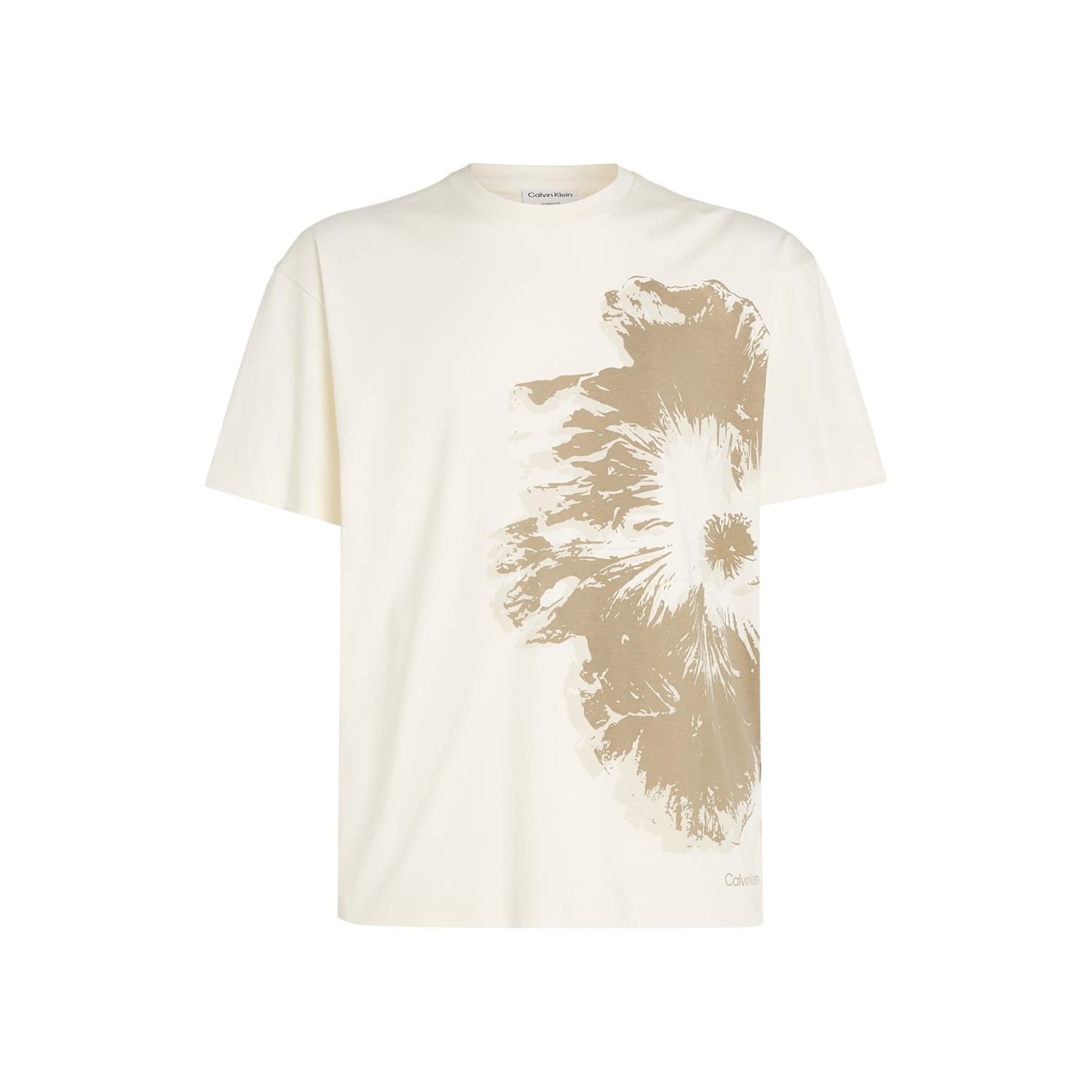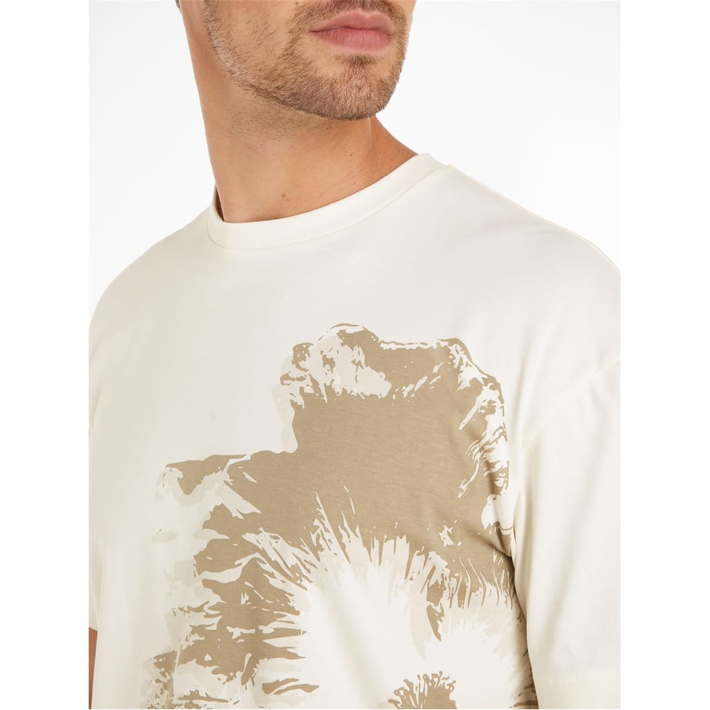 This Calvin Klein t-shirt is a perfect addition to your wardrobe, featuring a regular fit and short sleeves for a comfortable wear. The crew neck design complements the floral graphic print, adding a stylish touch. The iconic logo embellishment enhances its appeal, making it a standout piece. -