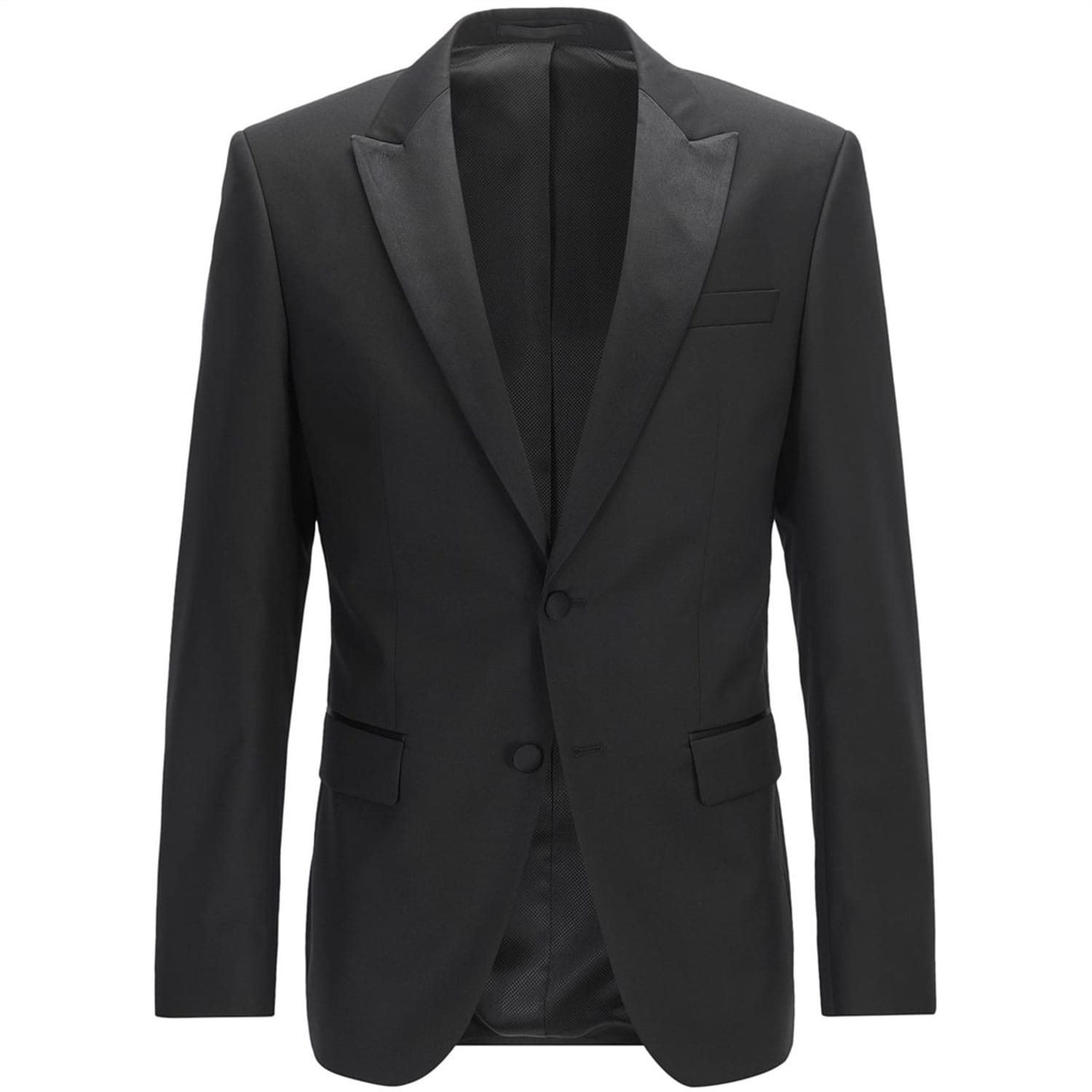 This Boss suit jacket is a staple for your outerwear collection. Crafted from solid fabric, it features a notched neckline, button closure, and a regular fit. With long sleeves and a straight hem, this long jacket includes practical pockets, a chest pocket, and front pockets for added functionality. -