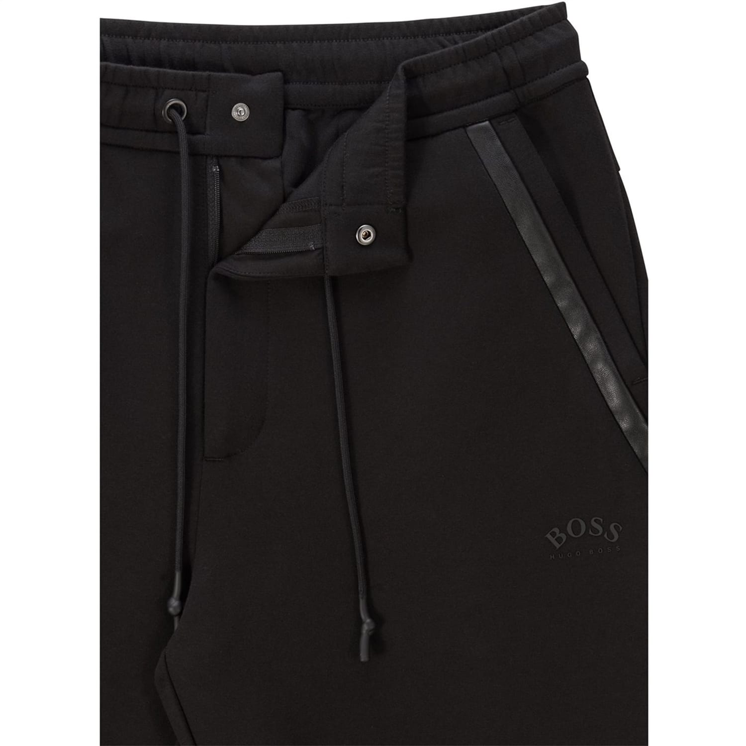 These casual sweatpants from Boss offer a solid pattern and are perfect for a relaxed look. Featuring a zipper closure and a logo embellishment, they combine style with comfort, making them an ideal choice for any casual outing. -